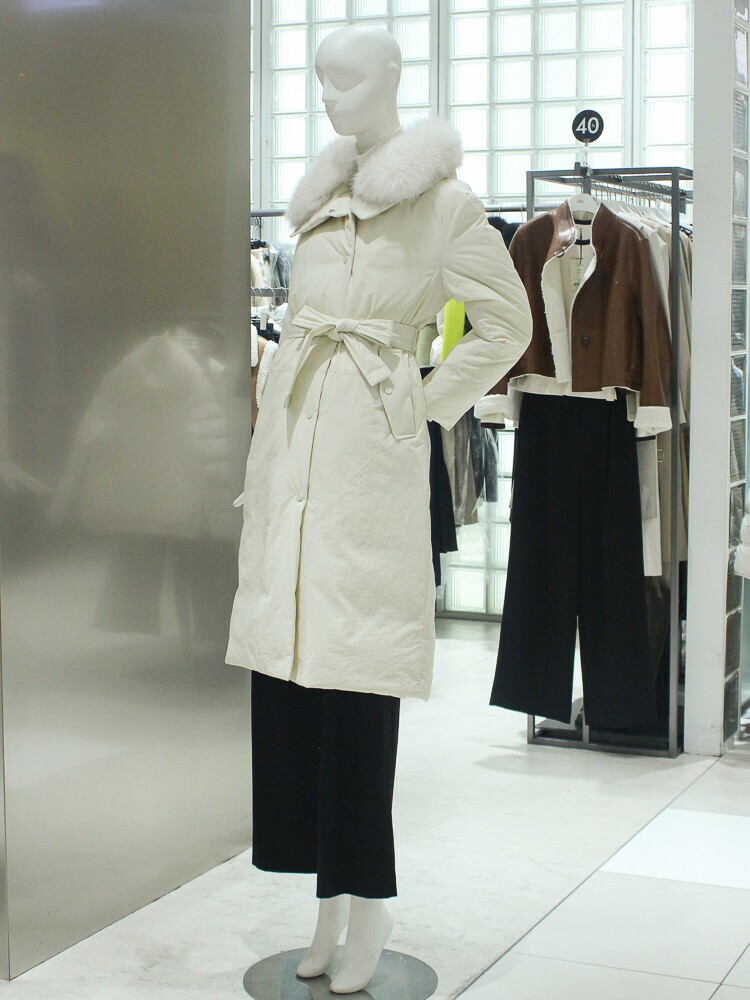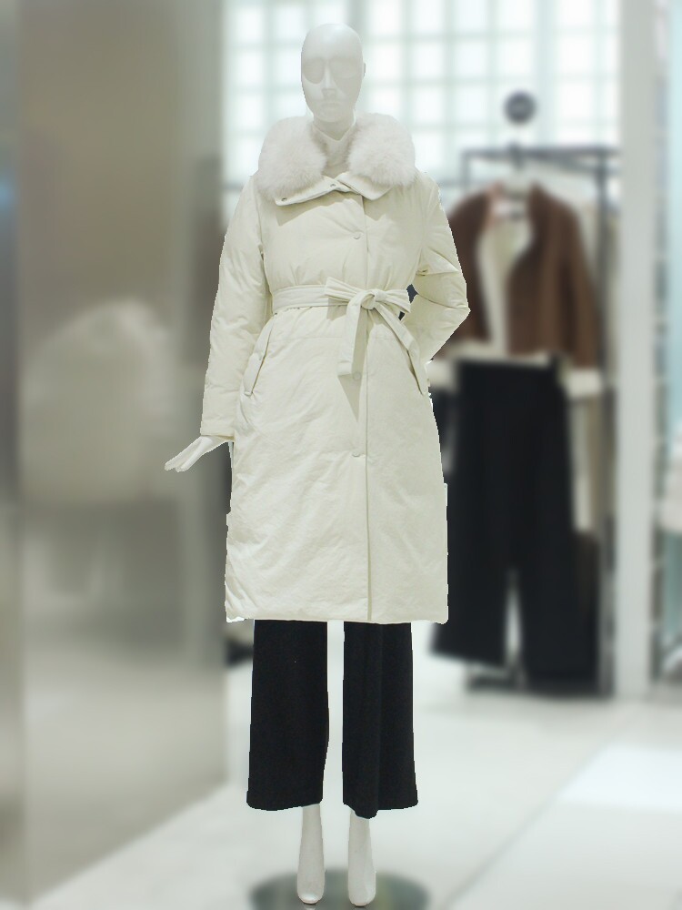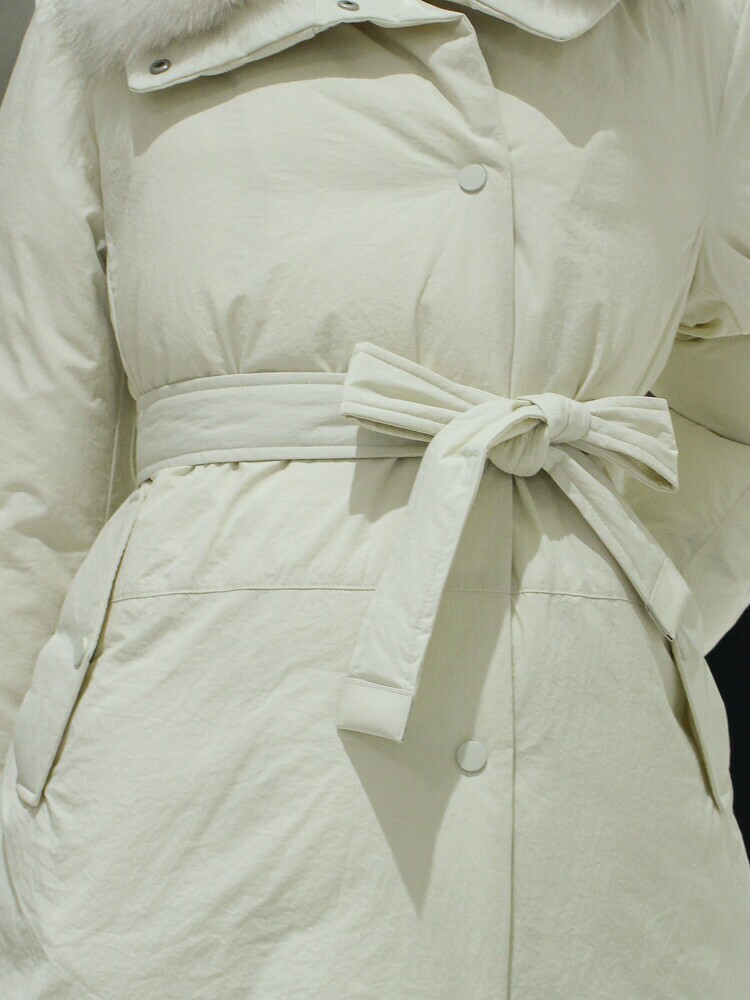 ZOOC 벨티드 폭스퍼 롱 구스다운 점퍼 V234PSG946