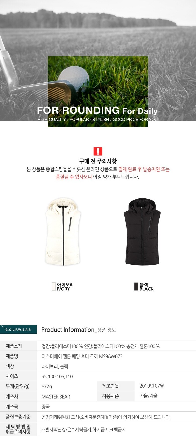 상품불량에 의한 반품, A/S, 품질보증 및 피해보상 등에 관한 사항은 소비자 분쟁해결기준(공정거래위원회 고시) 구매자가 미성년자인 경우에는 상품 구입시 법정대리인이 동의하지 아니하면 미성년자 본인 또는 법정대리인이 구매취소 할 수 있습니다. |