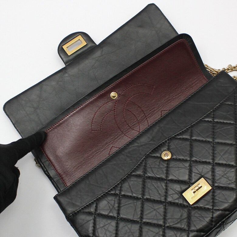 샤넬 A37587 블랙 빈티지 2.55 미듐 금장 체인 숄더백