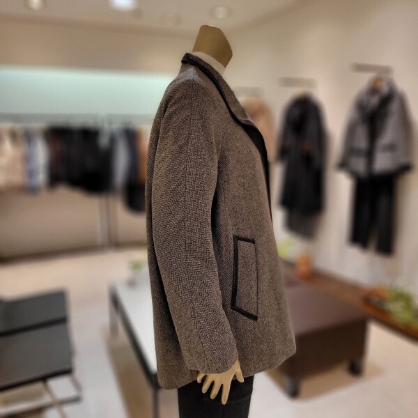 DH81270_돈피파이핑 울 헤링본 속누빔 반코트