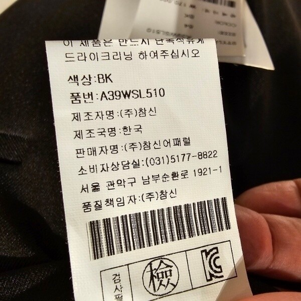 세탁방법 및 취급시 주의사항 : 드라이크리닝