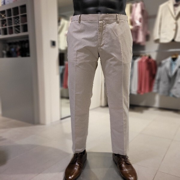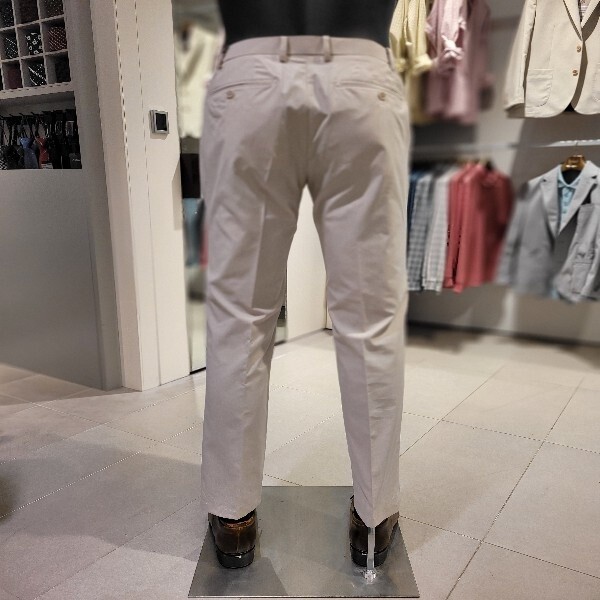 연베이지 컬러의 두께감이 얇은 봄/여름용 팬츠 입니다.