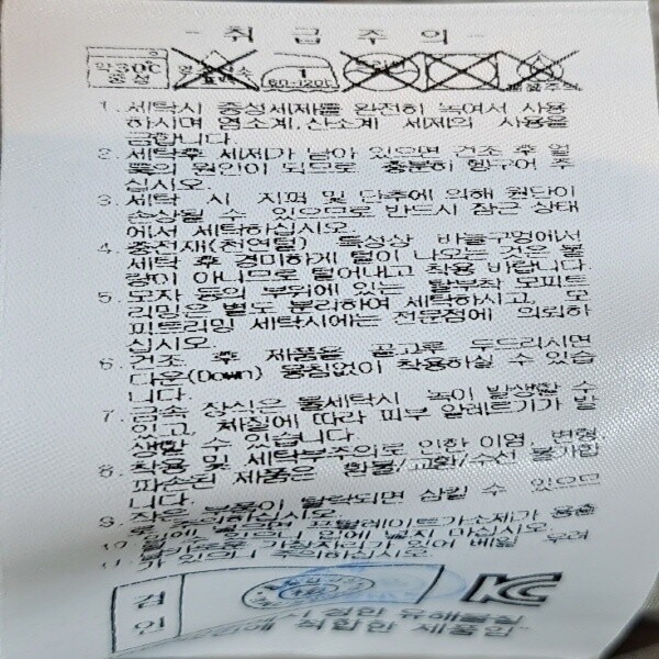 세탁방법 및 취급시 주의사항 : 상세 참조