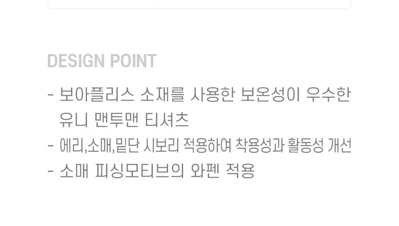 보아플리스 소재를 사용한 보온성이 우수한 유니 맨투맨 티셔츠