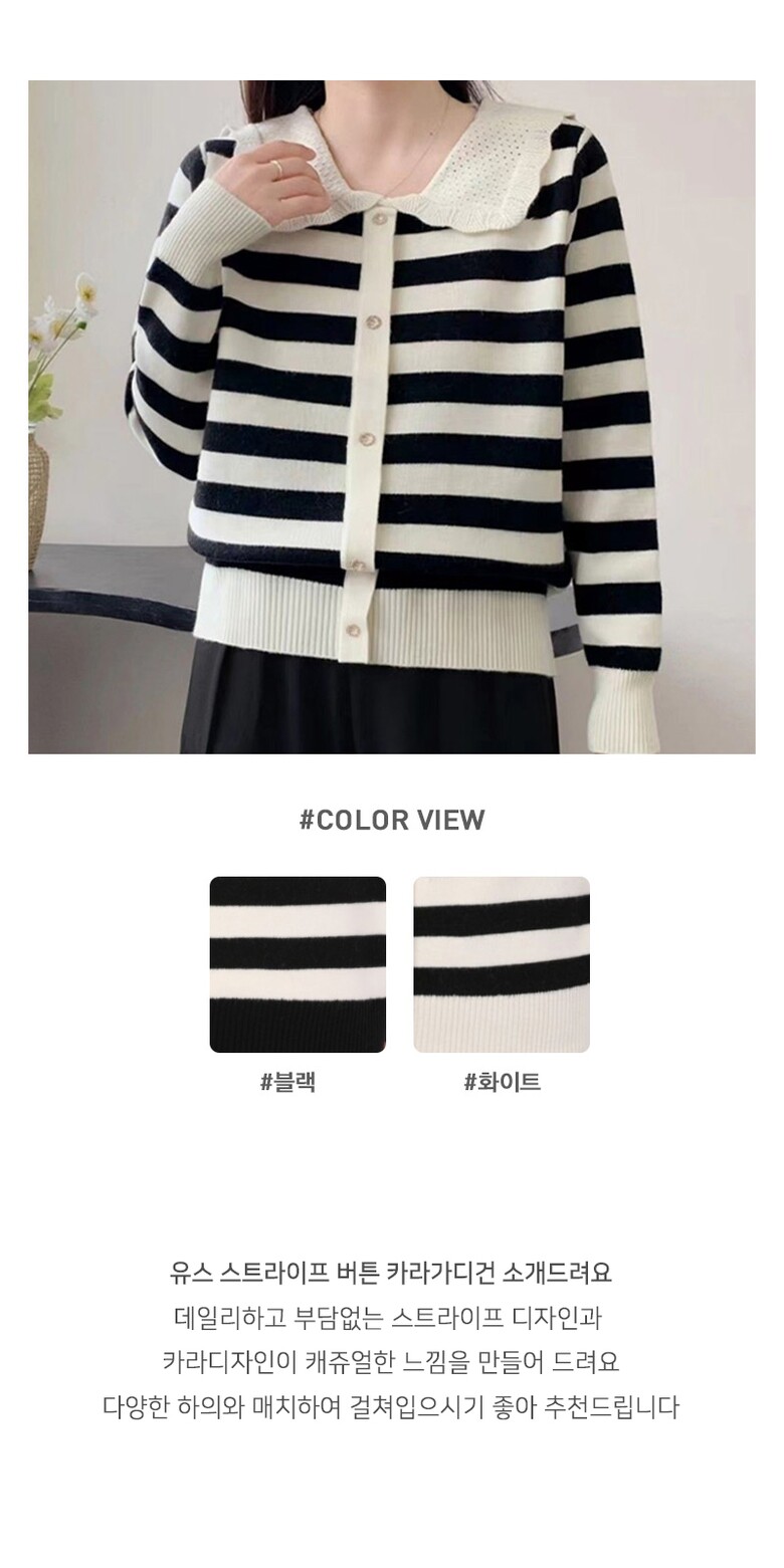 빠른배송/유스 스트라이프 버튼 카라가디건