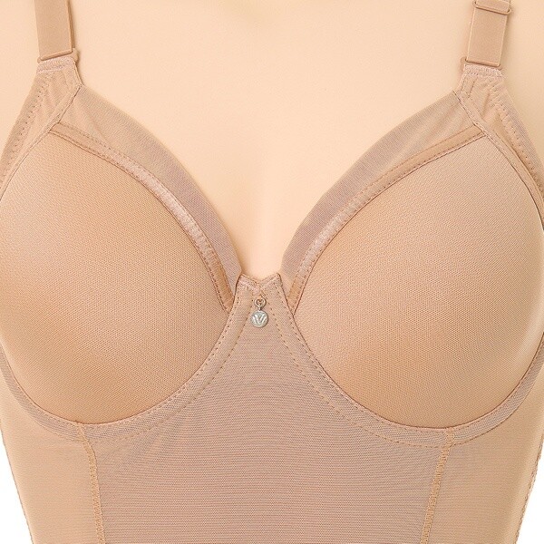 보정력이 좋은 심플한 몰드컵 스타일의 미듐타입 바디슈트로 직조몰드를 이중구조로 몰딩하여 가볍고 투명하며 통기성이 좋아 쾌적한 착용감을 주고 겉옷의 실루엣을 매끄럽게 해주는 제품