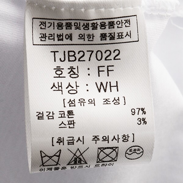 | 1. 제품 소재 (섬유의 조성 또는 혼용률을 백분율로 표시, 기능성인 경우 성적서 또는 허가서) | 코튼 97%, 스판 3% |