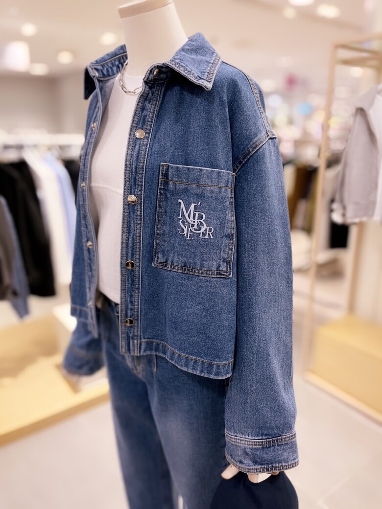 SJ4SHF14M_원포켓 자수 크랍 데님 셔츠