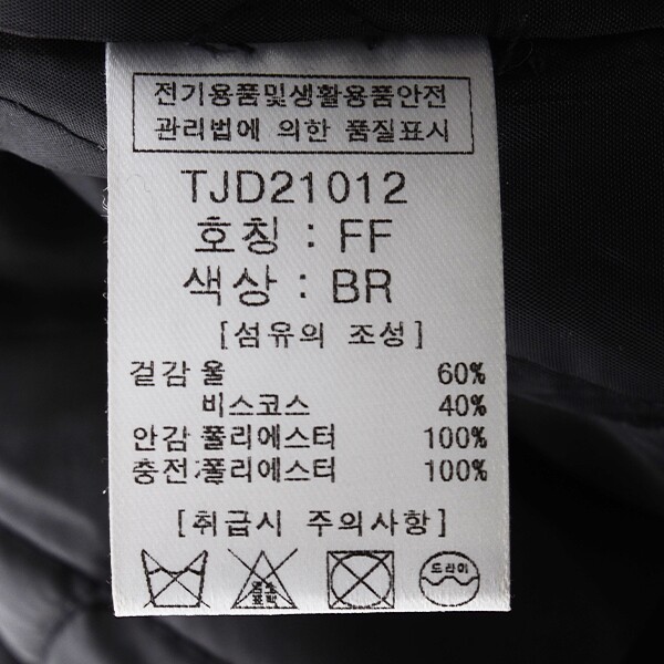 제품소재 : 겉감-울 60%, 비스코스 40% / 안감-폴리에스터 100% / 충전- 폴리에스터 100%