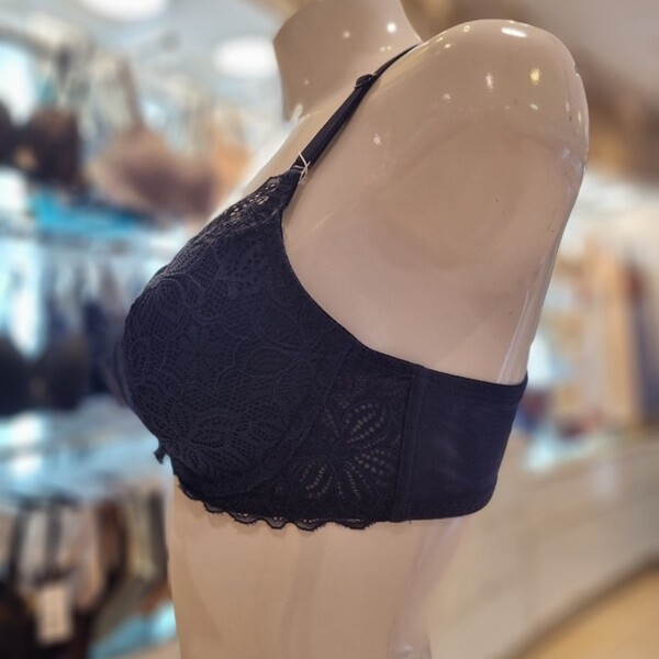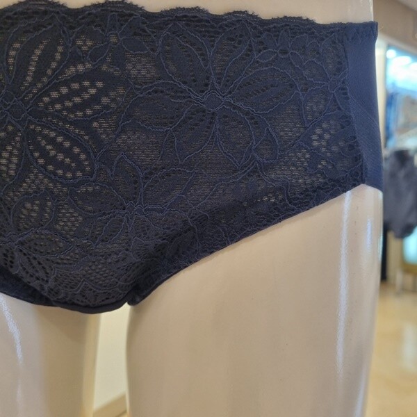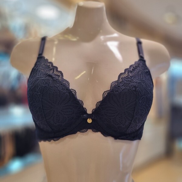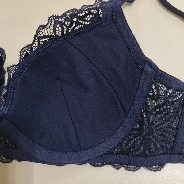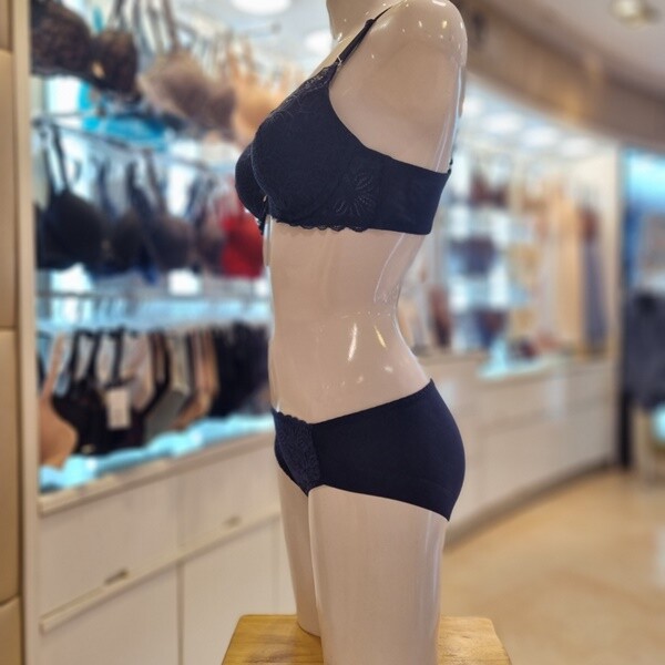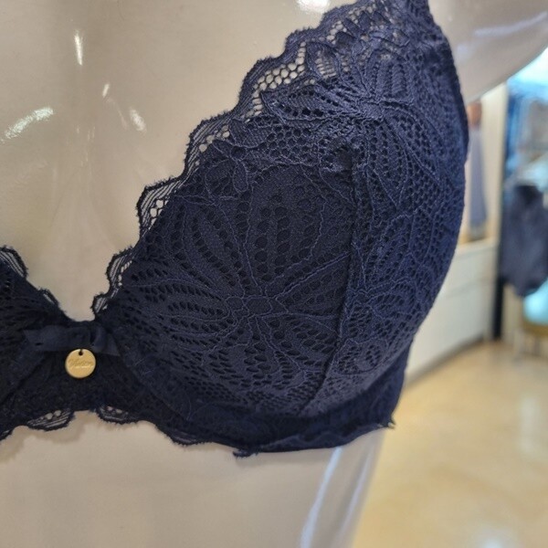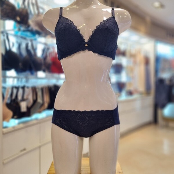입체감이 돋보이는 수입 레이스를 사용한 몰드 브라 햄팬티세트 네이비컬러 제품 입니다.