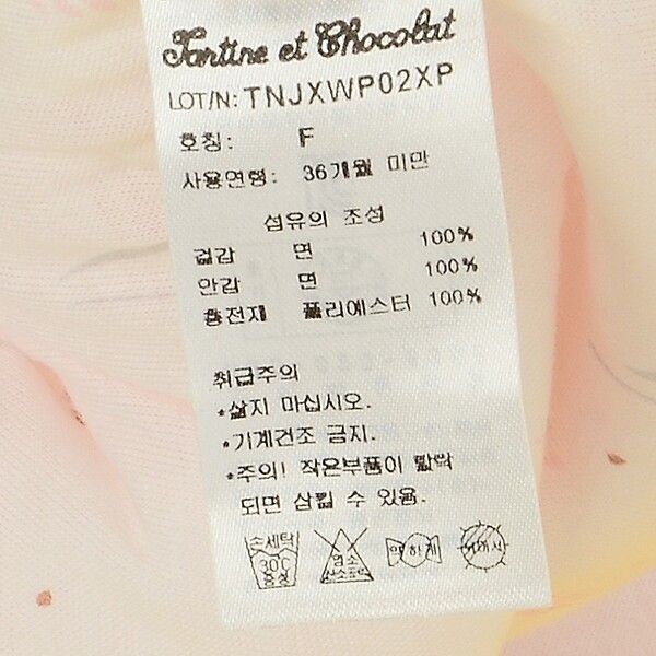 | 6. 취급시 주의사항 | 삶지 마십시오, 기계건조 금지, 주의! 작은 부품이 탈락되면 삼킬 수 있음. |