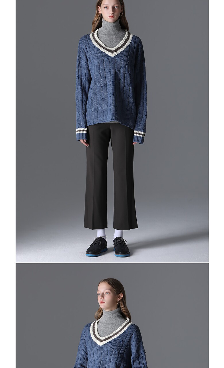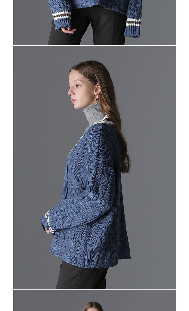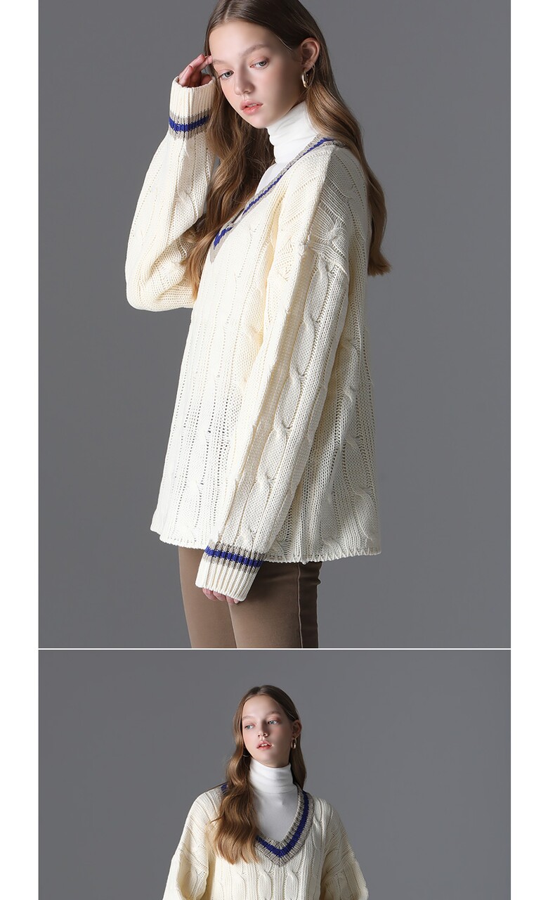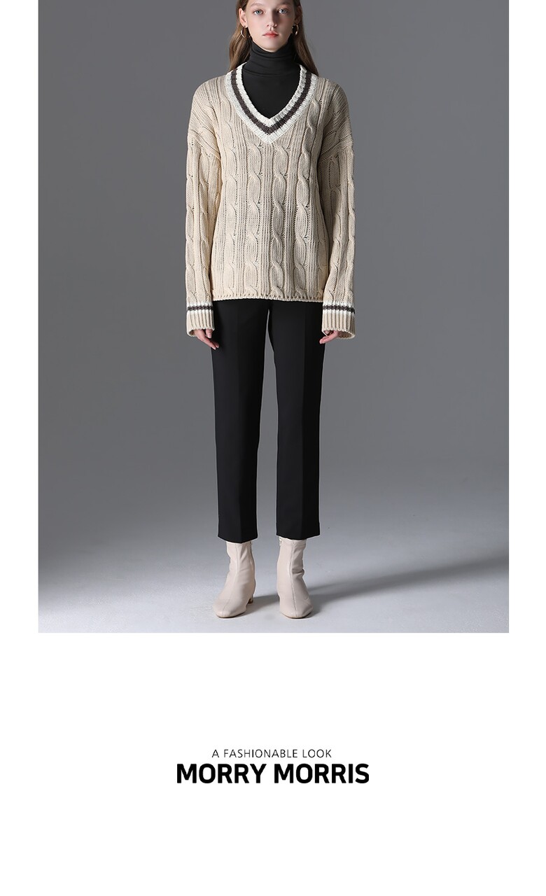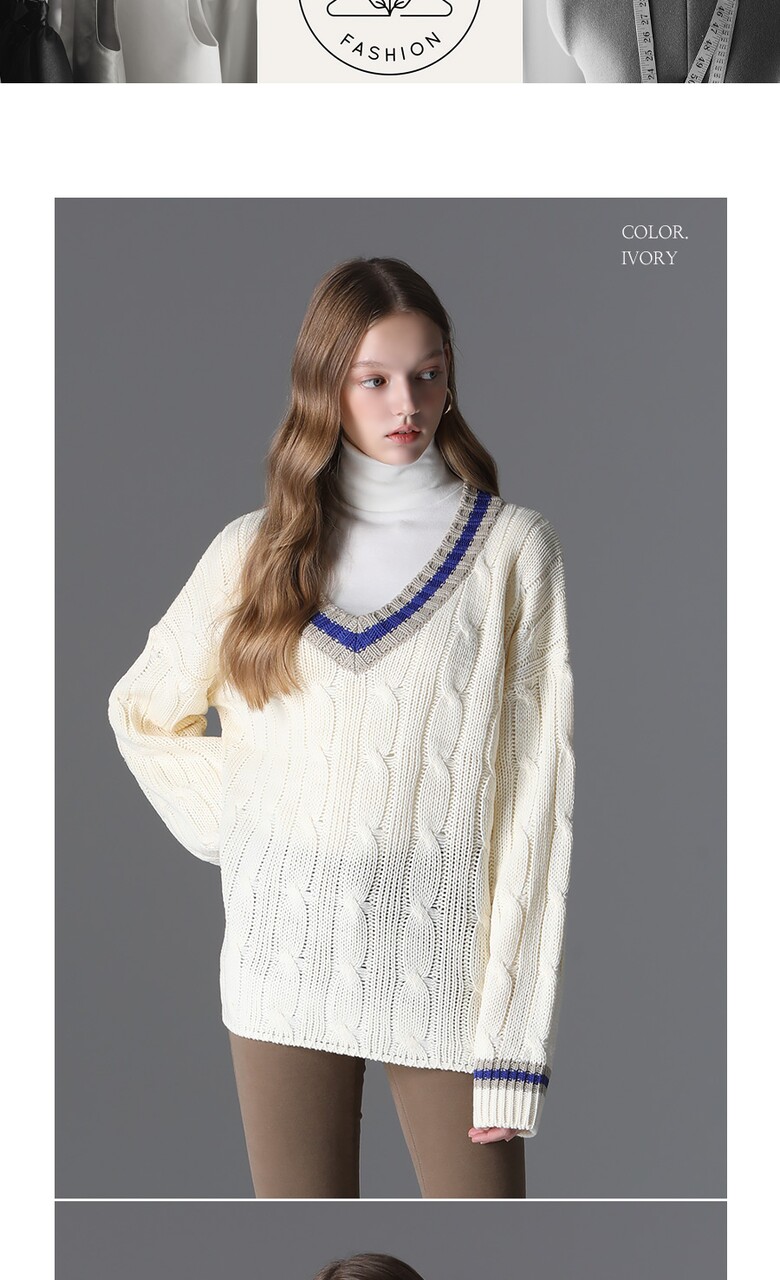 [모리모리스] 클래식 배색 브이넥 니트