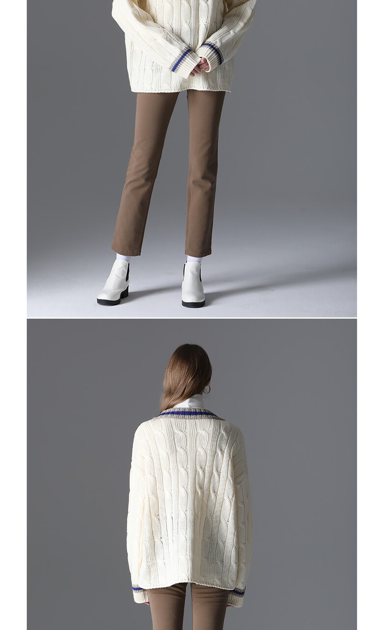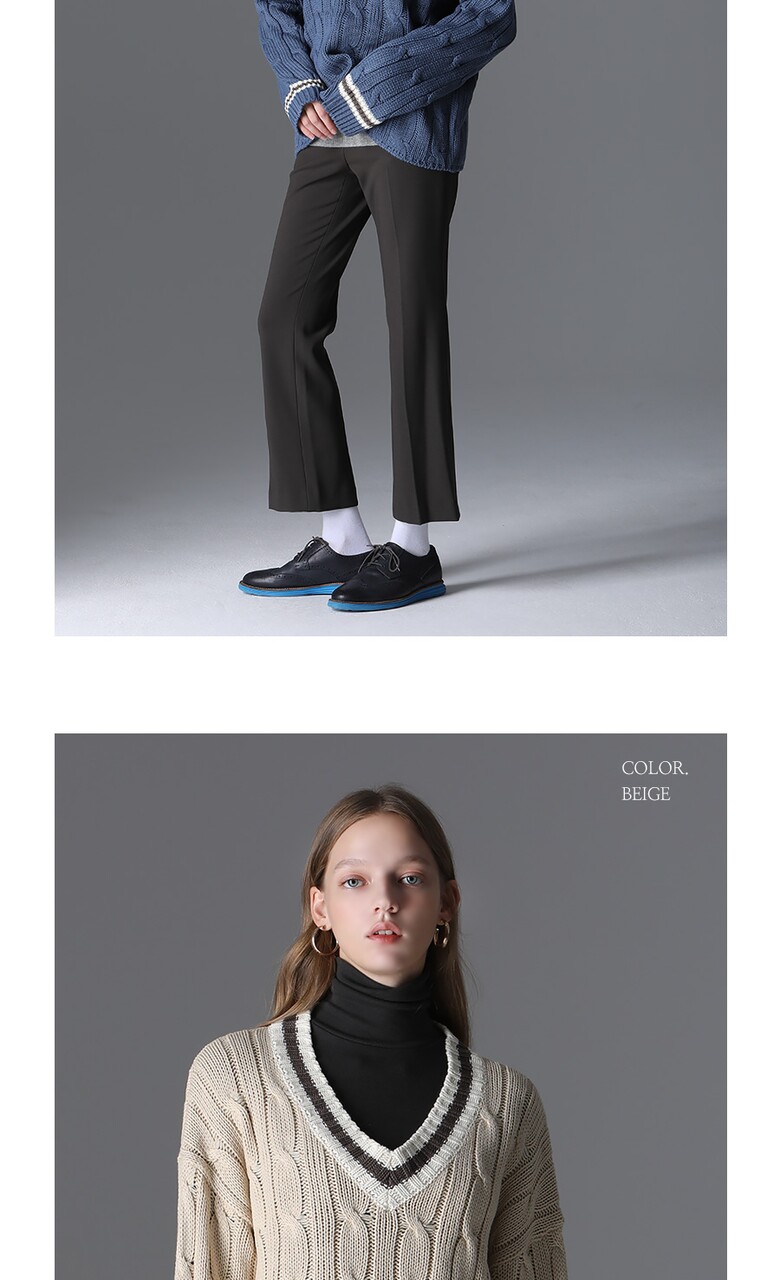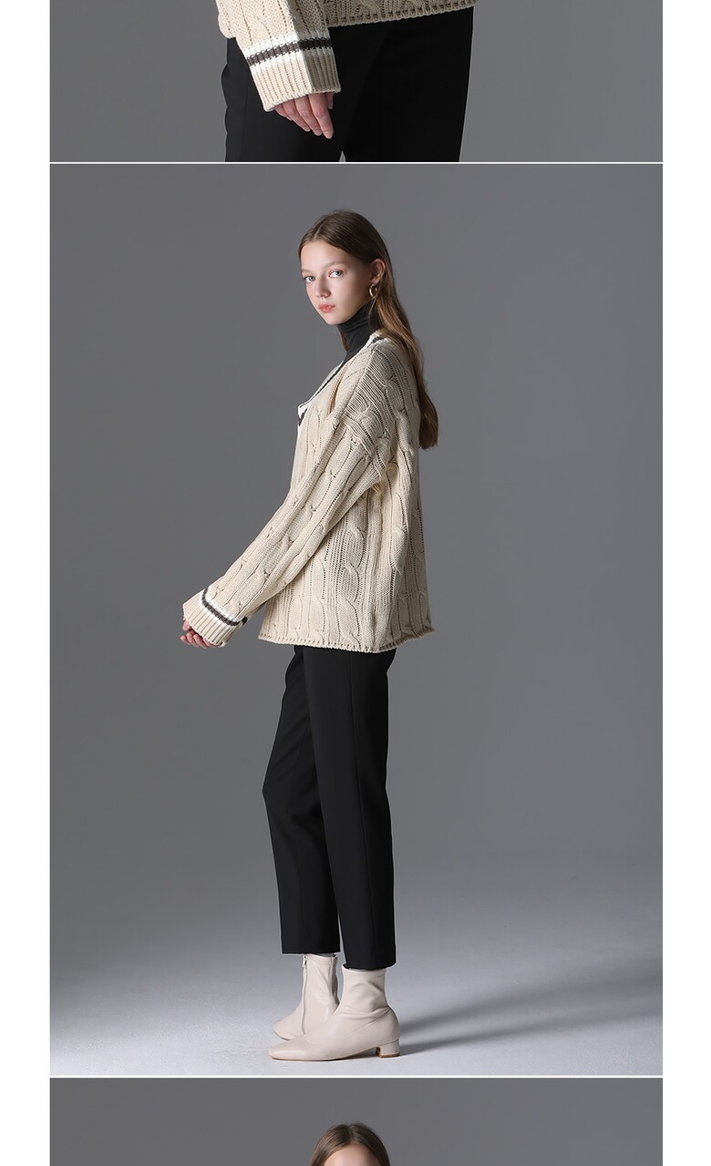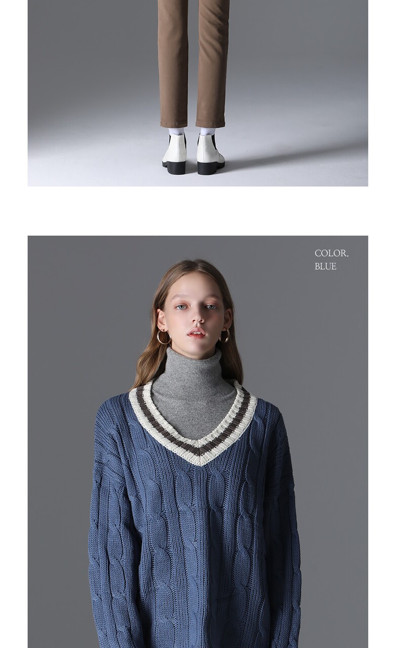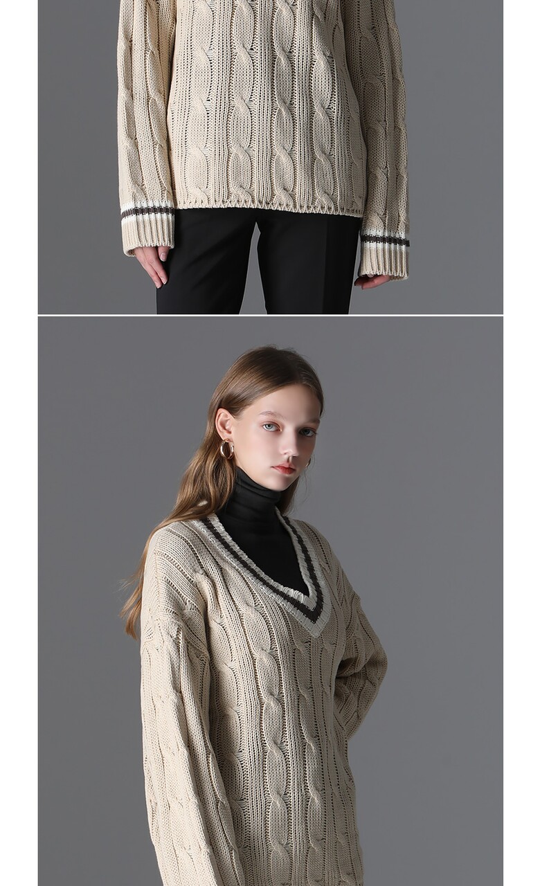[모리모리스] 클래식 배색 브이넥 니트