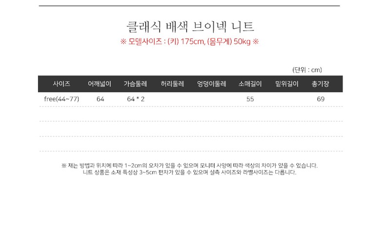 | 3. 치수 | FREE(44~66) |