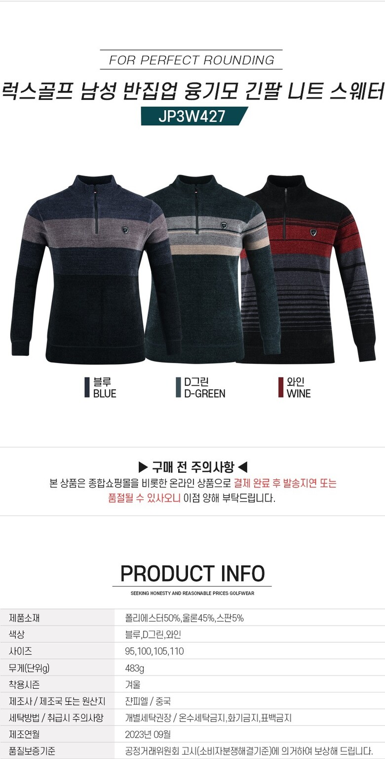 보스케 남성 겨울 골프웨어 골프 융기모 반집업 긴팔 니트 L30112325