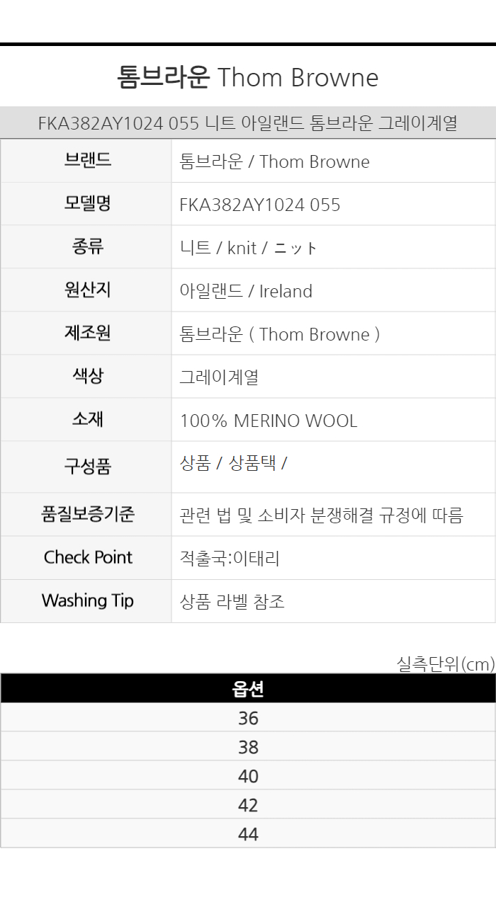 [명품] 톰브라운 FKA382A / 사선 완장 아이리시 포인텔 터틀넥 니트
