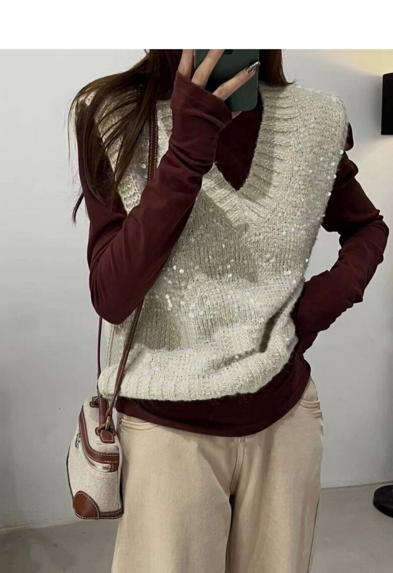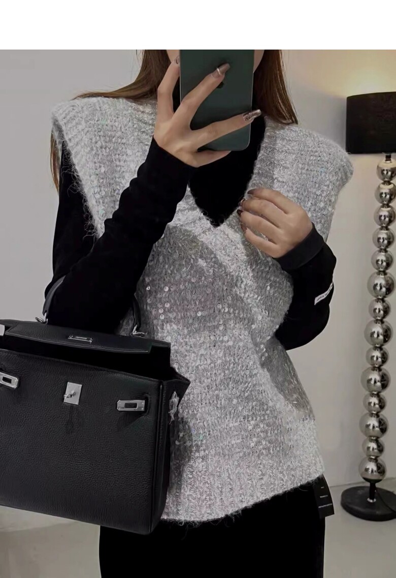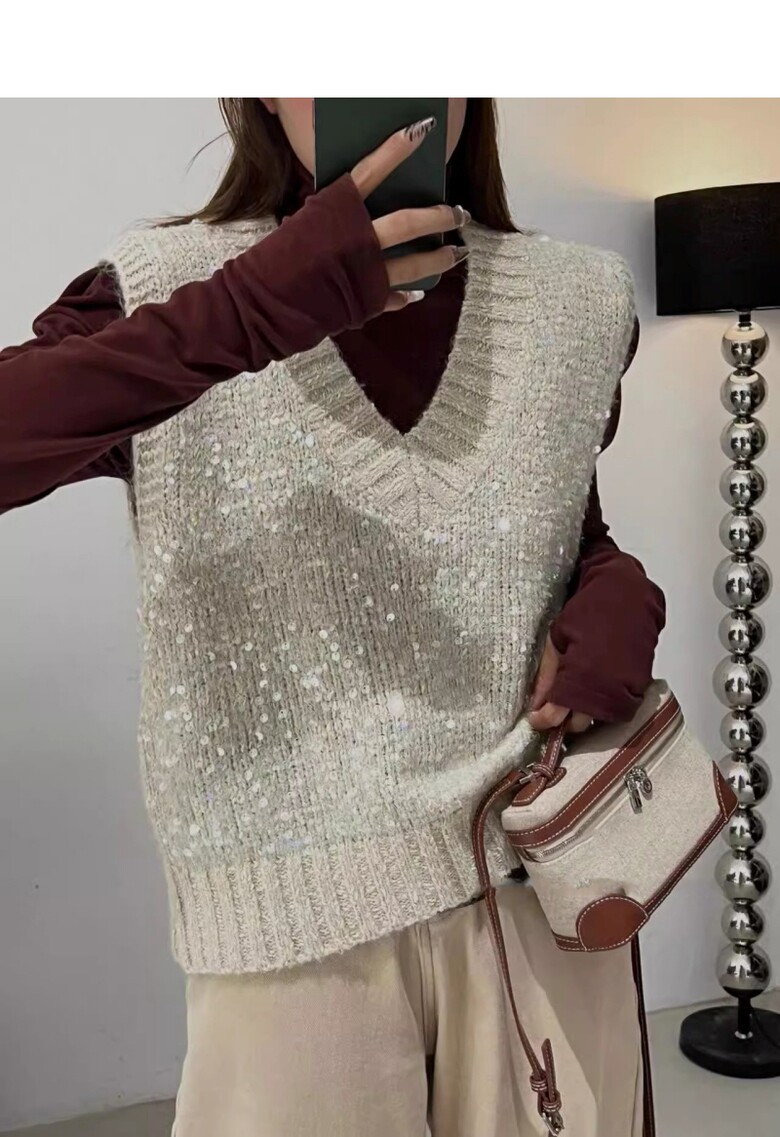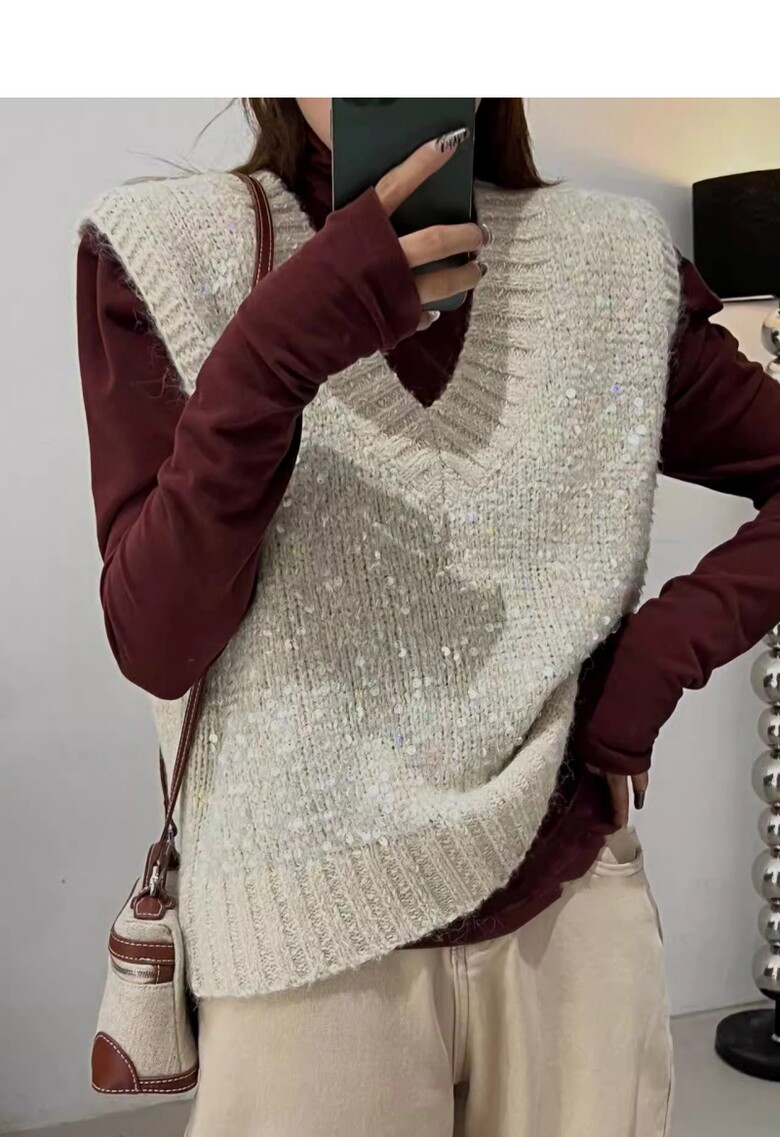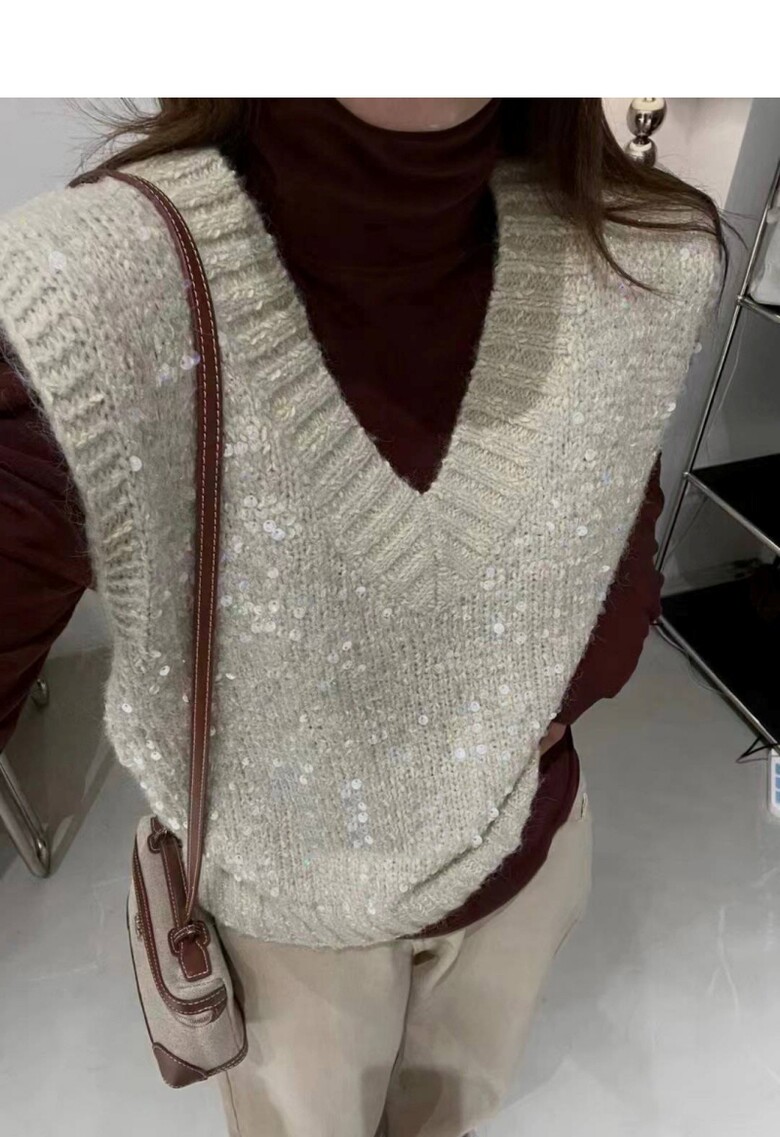 엘리아 V넥 비주 니트 조끼_240105_EK11