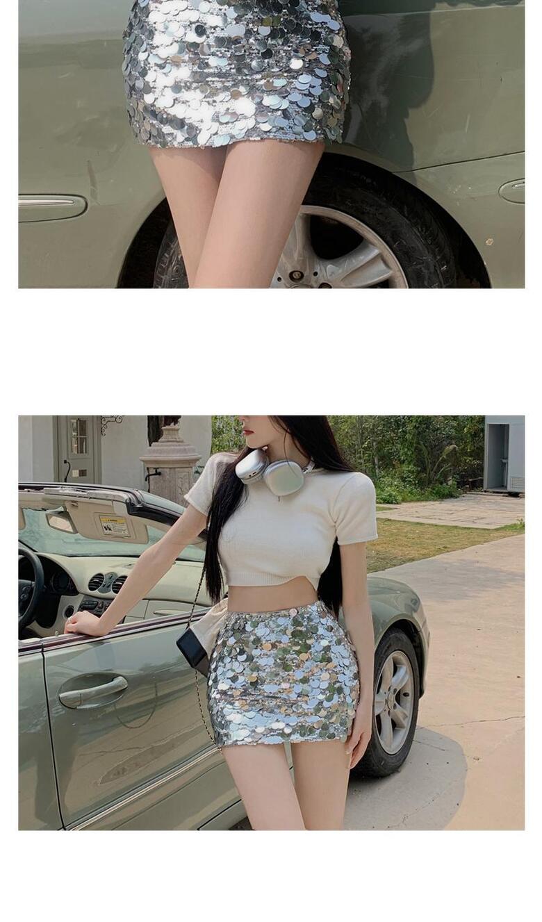 에퀴르 여성 봄 여름 하이웨스트 실버 스팽클 예쁜 미니 스커트