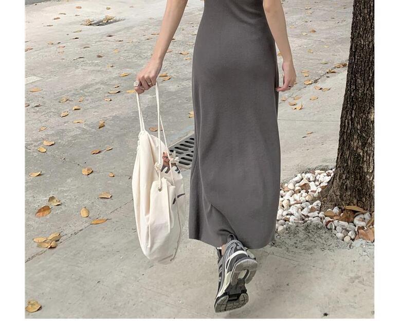 에퀴르 여성 봄 여름 라운드넥 편한 데일리 니트 민소매 롱 원피스