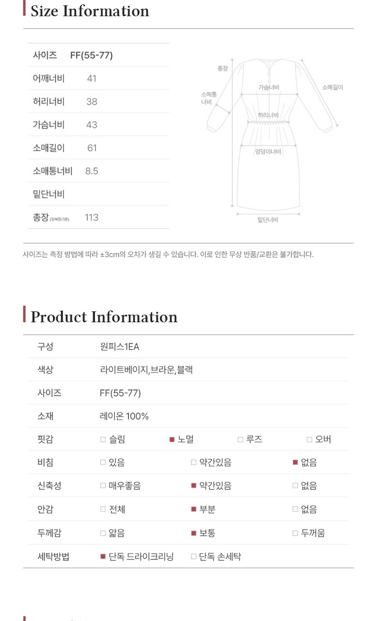• 처음 배송된 상품상태와 다를 경우(세탁/착용 후 외출하신 경우) 반품이 불가합니다.