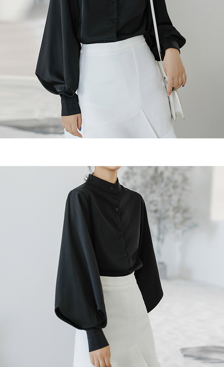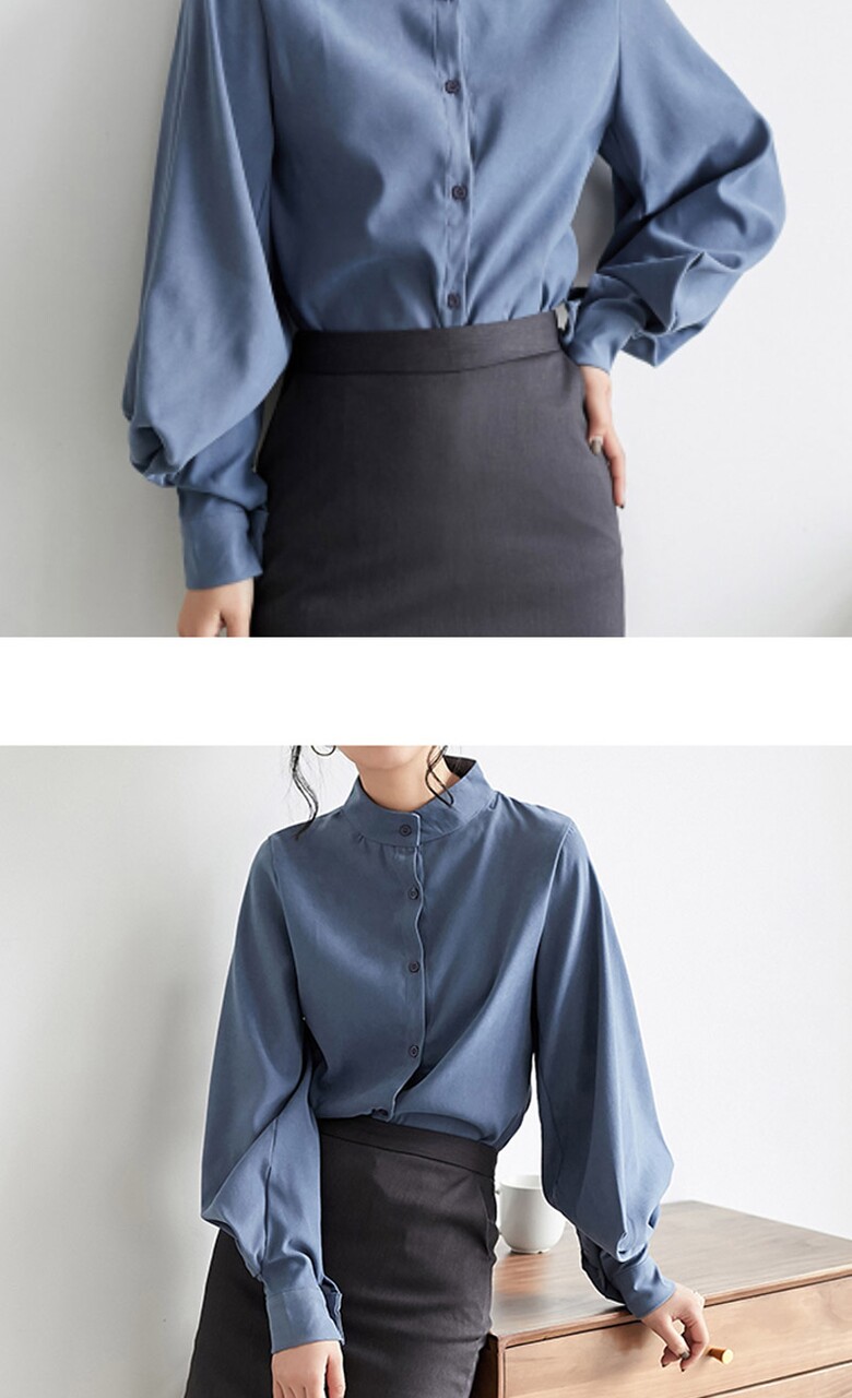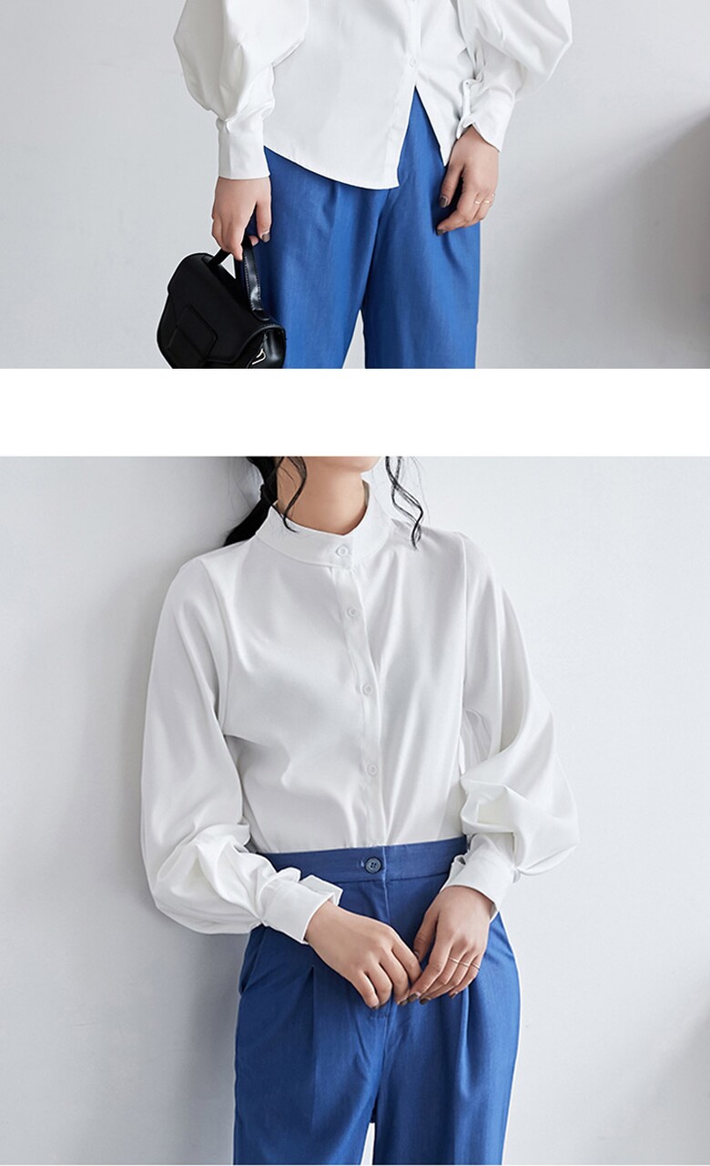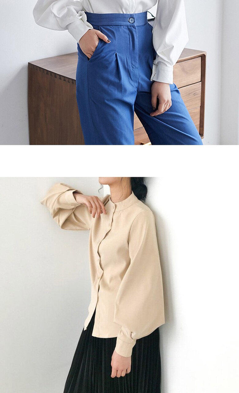 [~77까지]스쿠 퍼프 소매 하이넥 블라우스