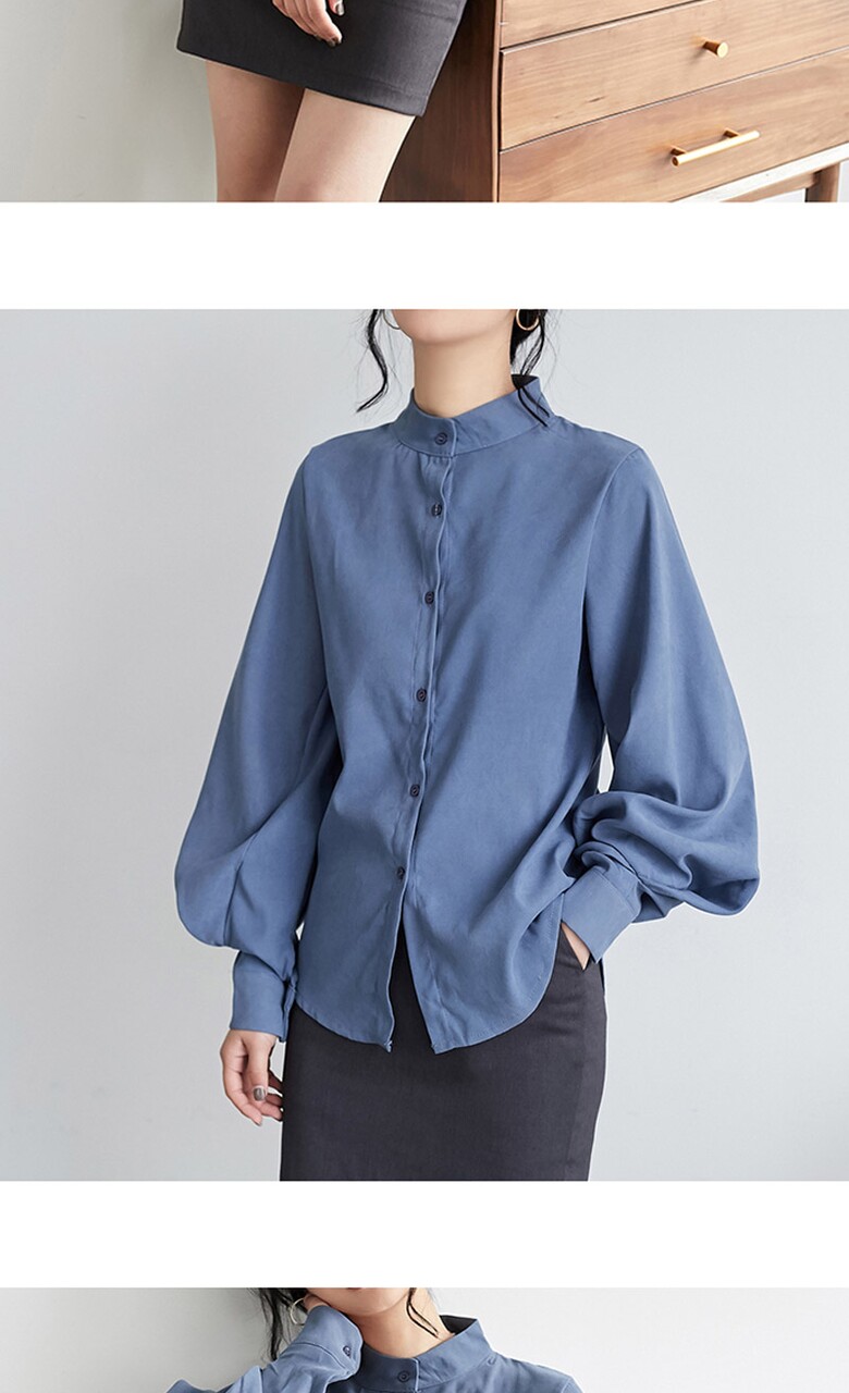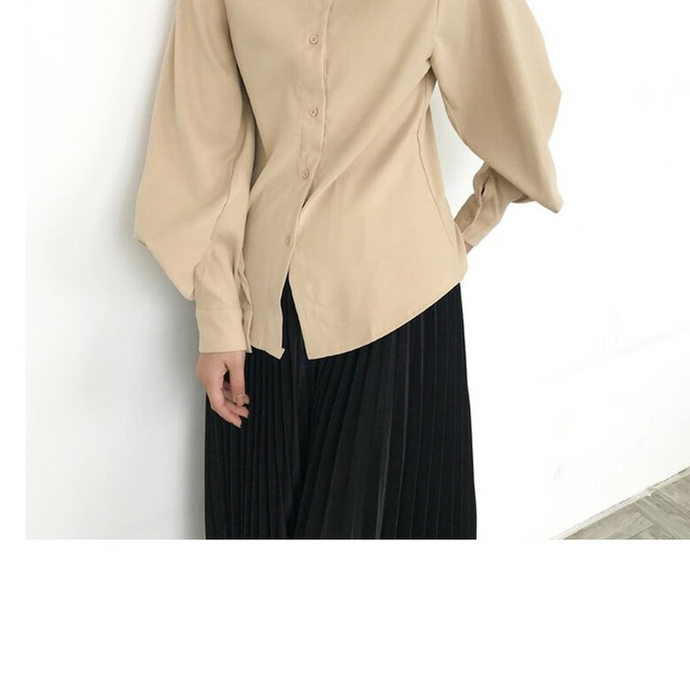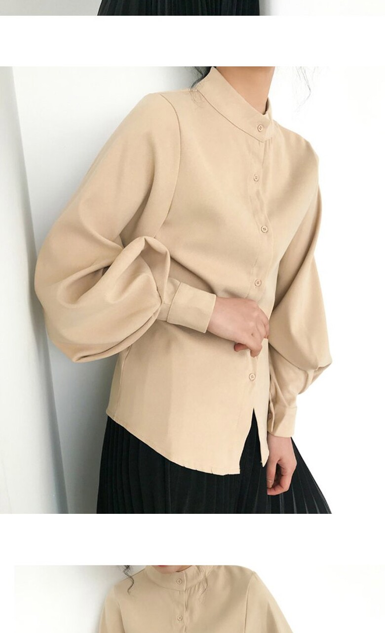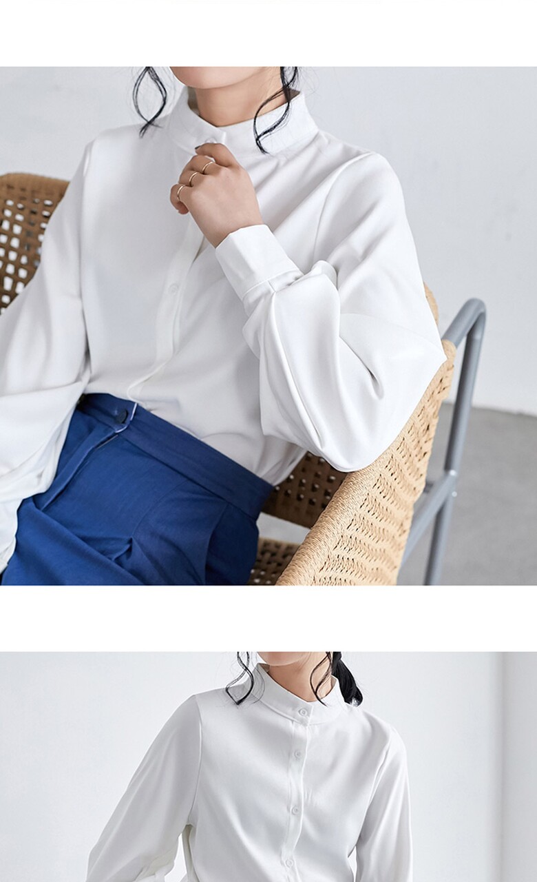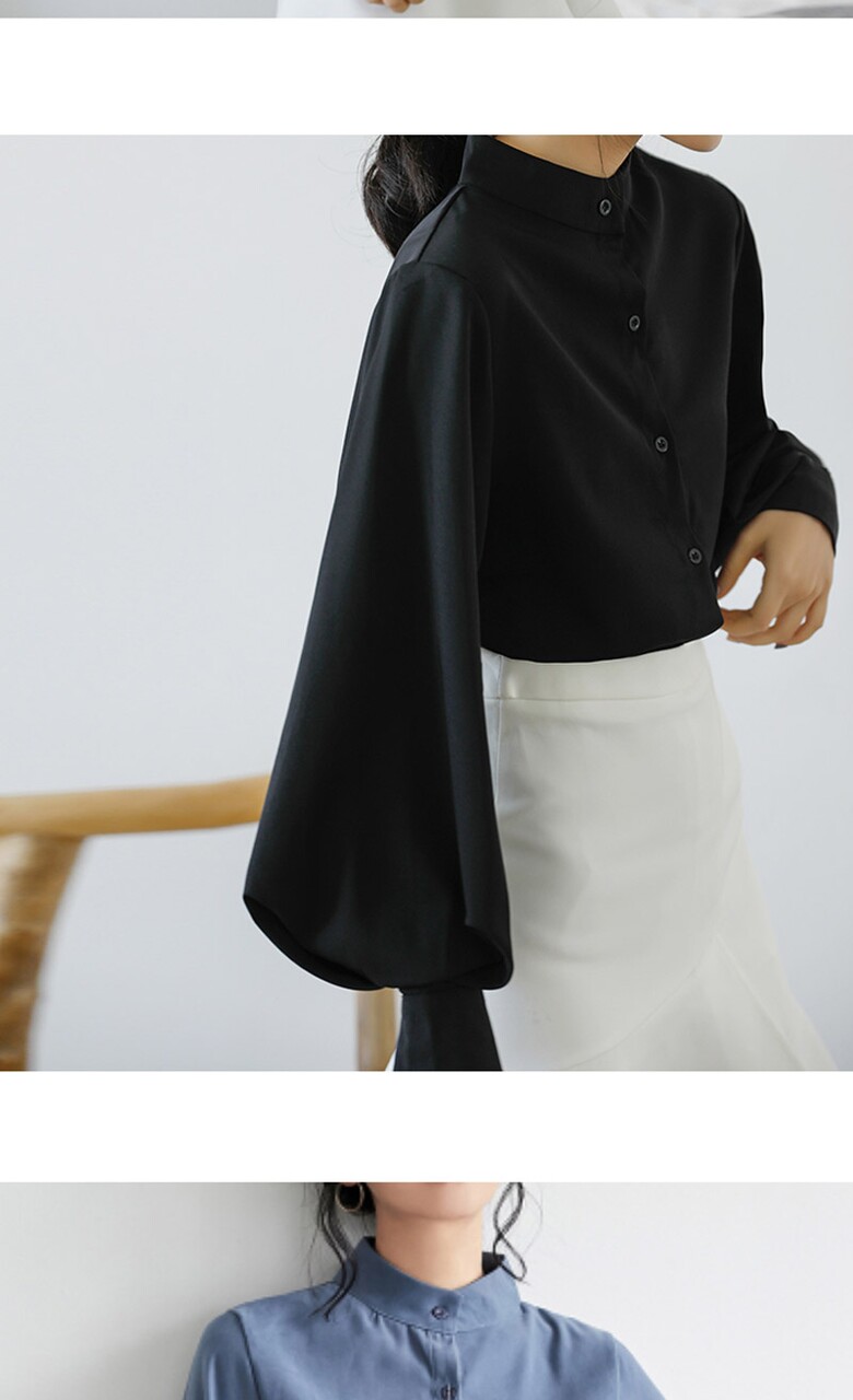 [~77까지]스쿠 퍼프 소매 하이넥 블라우스
