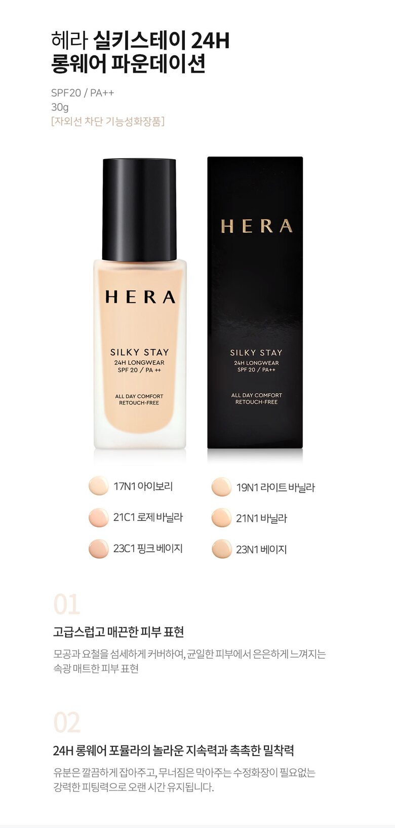 헤라 실키스테이 24H 롱웨어 파운데이션 30g / 17N1(아이보리)