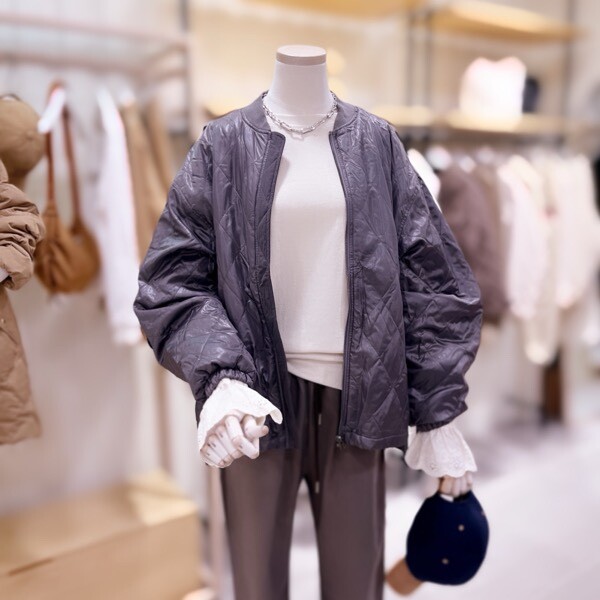 루즈핏 다이아 퀼팅 점퍼??노카라넥 라인으로?퀼팅스티치가 돋보여