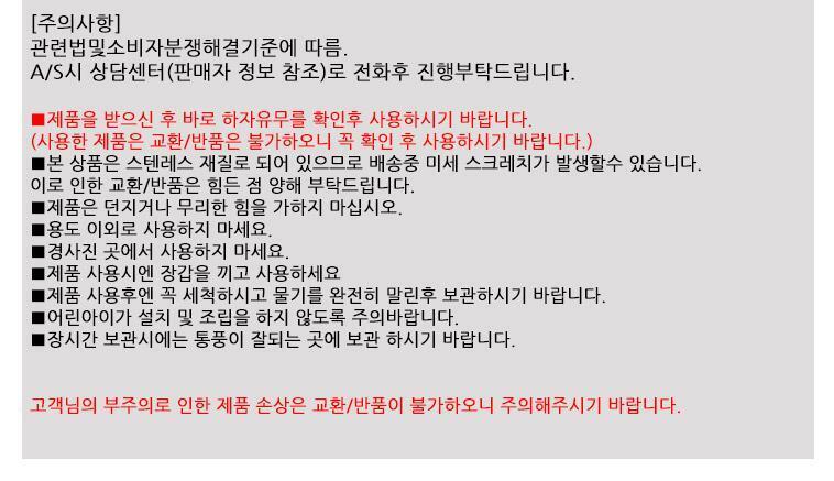 상품불량에 의한 반품, A/S, 품질보증 및 피해보상 등에 관한 사항은 소비자 분쟁해결기준(공정거래위원회 고시) 구매자가 미성년자인 경우에는 상품 구입시 법정대리인이 동의하지 아니하면 미성년자 본인 또는 법정대리인이 구매취소 할 수 있습니다. |