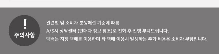 상품불량에 의한 반품, A/S, 품질보증 및 피해보상 등에 관한 사항은 소비자 분쟁해결기준(공정거래위원회 고시) 구매자가 미성년자인 경우에는 상품 구입시 법정대리인이 동의하지 아니하면 미성년자 본인 또는 법정대리인이 구매취소 할 수 있습니다. |