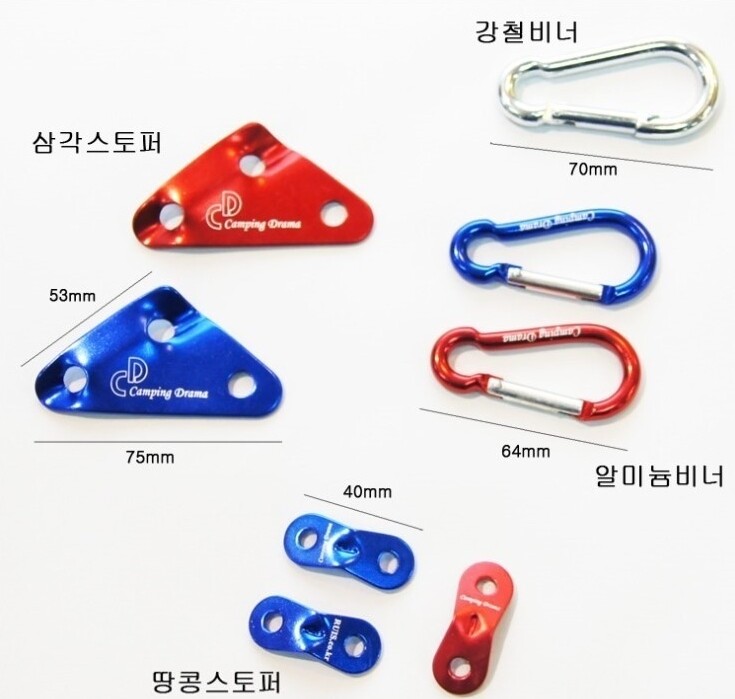 텐트, 타프 등등 사용하는 다용도 비너,스토퍼 입니다.
