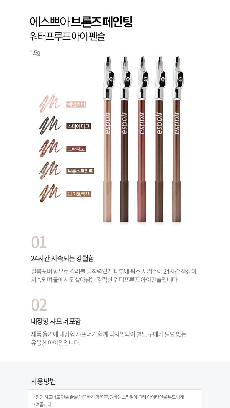 에스쁘아 브론즈페인팅 워터프루프 아이펜슬 아이라이너