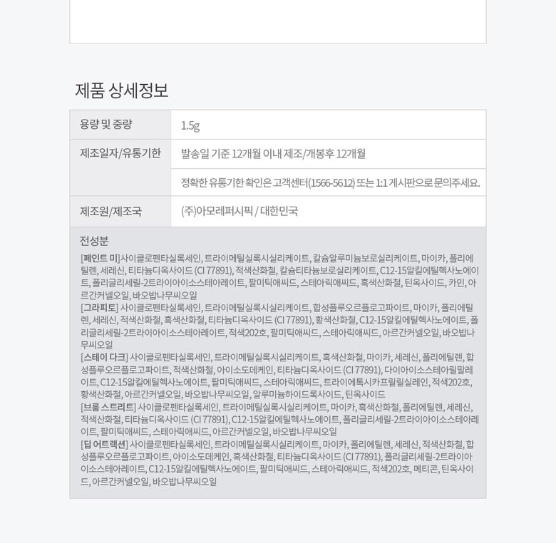 | 5. 제조사 | (주)아모레퍼시픽 /에스쁘아 |