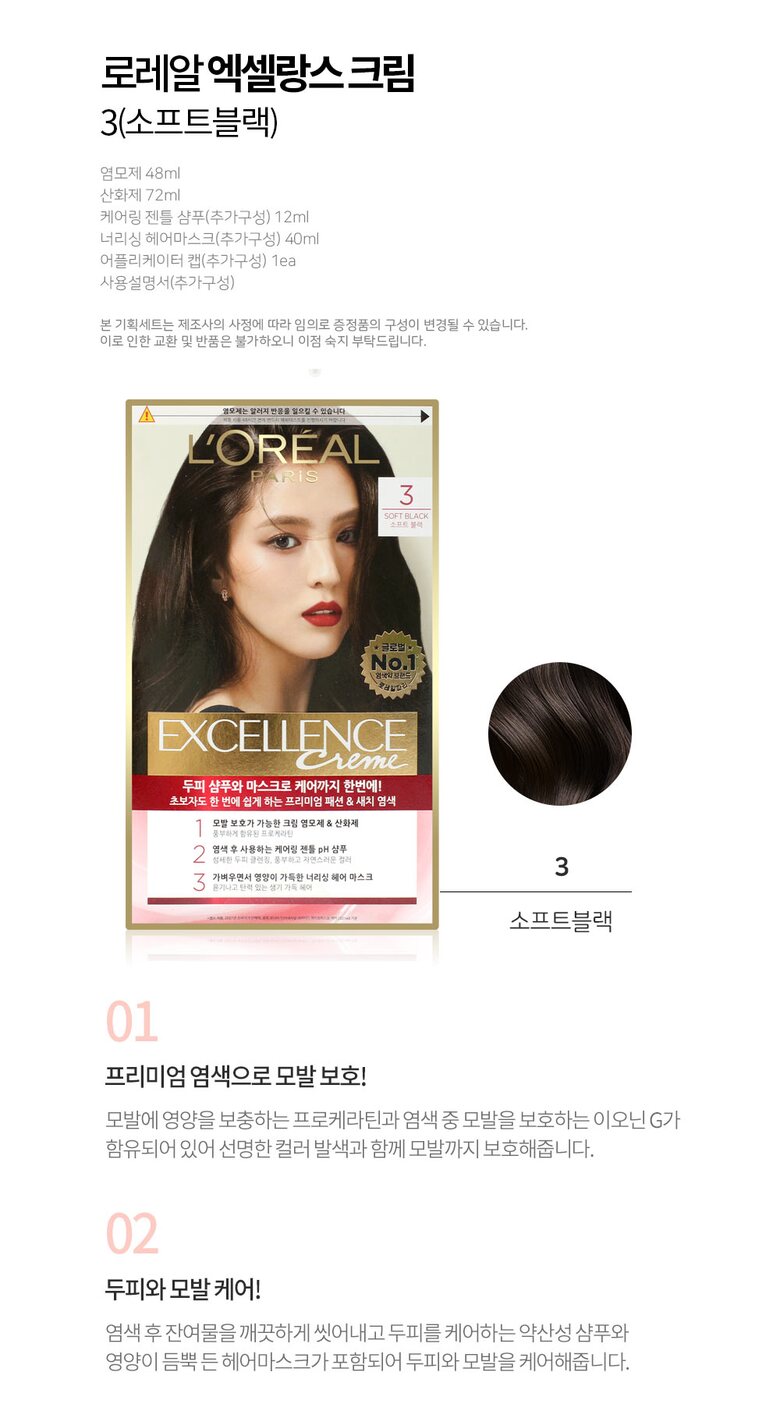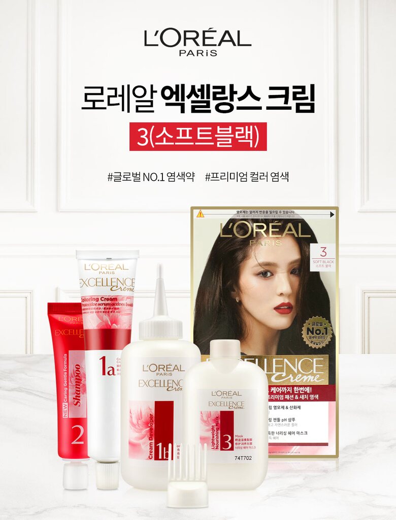 로레알 뉴엑셀랑스 크림 염색약 3(소프트블랙)