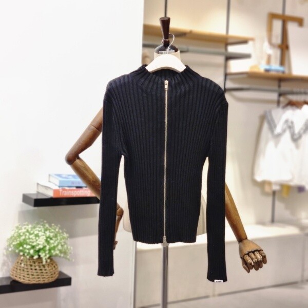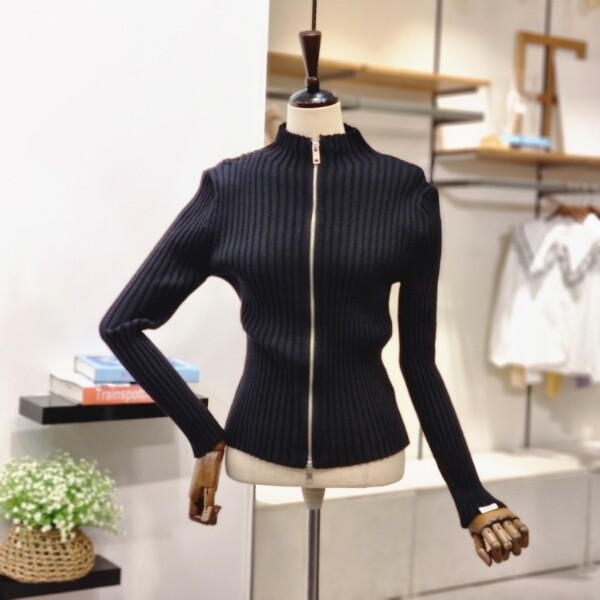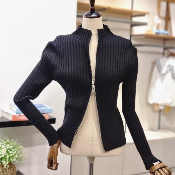 심플하고 슬림한 골지 니트 투웨이 집업이예요