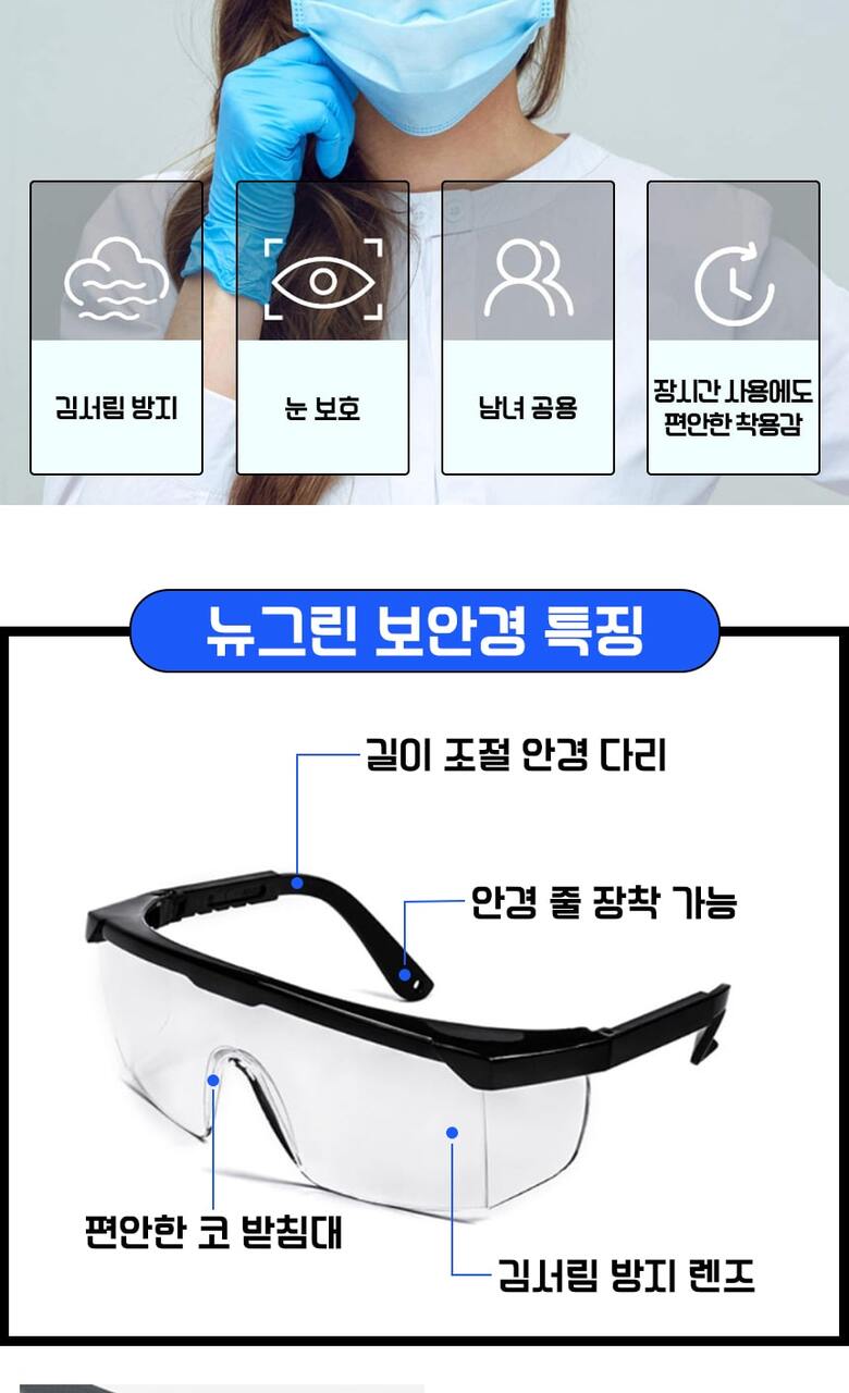 뉴그린 작업용 보안경 AB151 김서림방지 길이조절가능