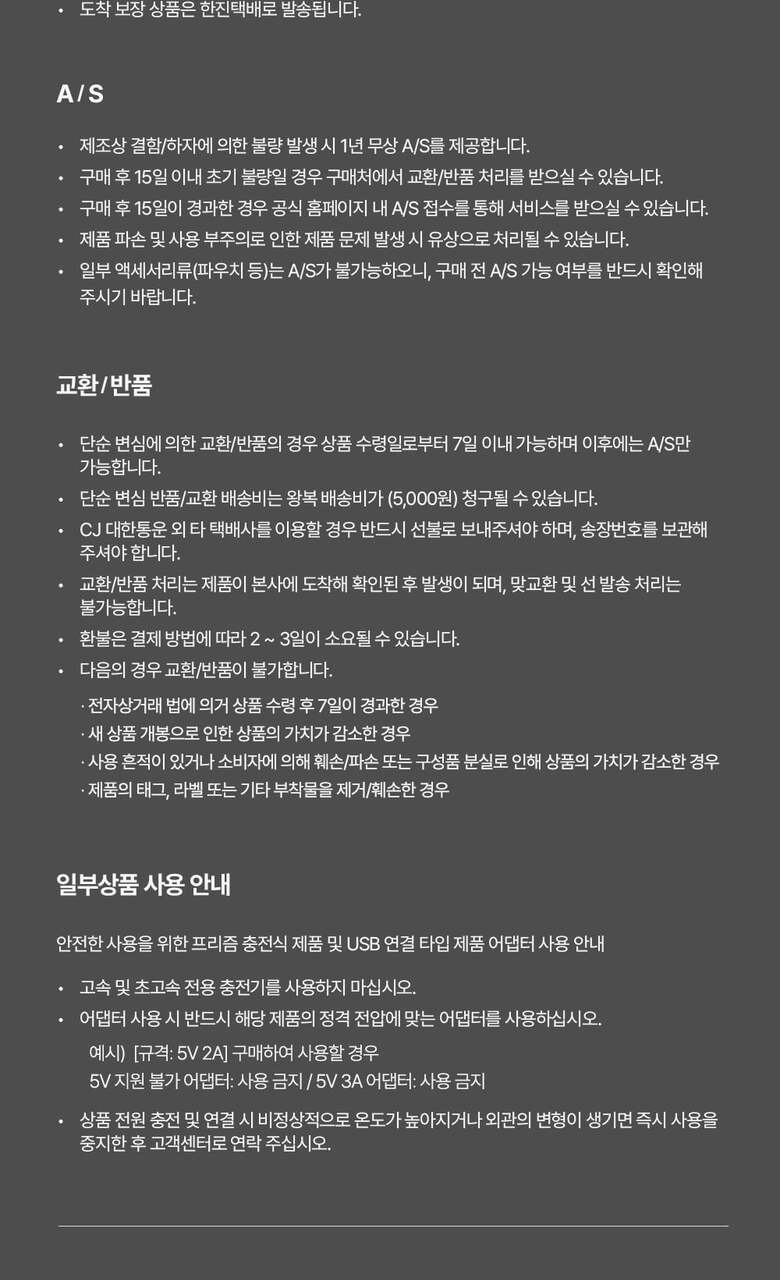 상품불량에 의한 반품, A/S, 품질보증 및 피해보상 등에 관한 사항은 소비자 분쟁해결기준(공정거래위원회 고시) 구매자가 미성년자인 경우에는 상품 구입시 법정대리인이 동의하지 아니하면 미성년자 본인 또는 법정대리인이 구매취소 할 수 있습니다. |