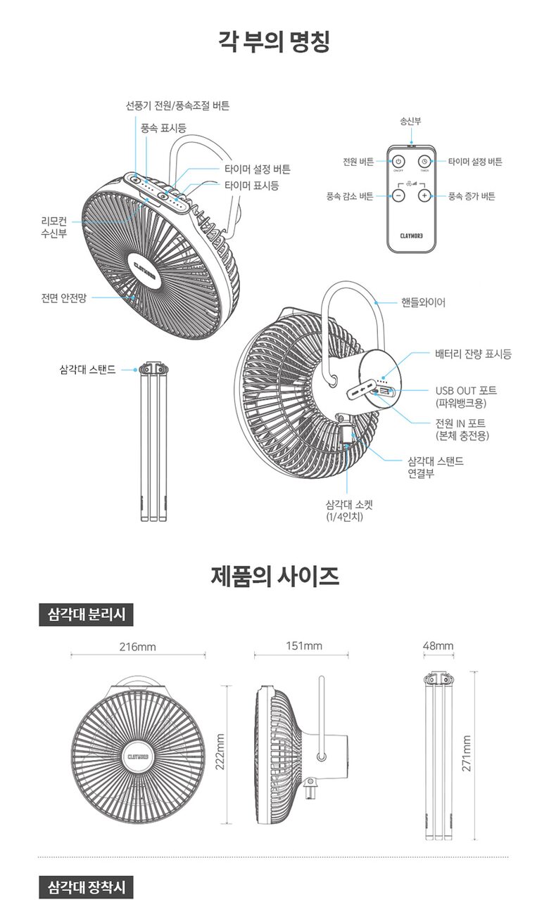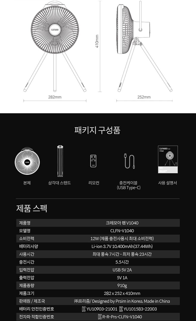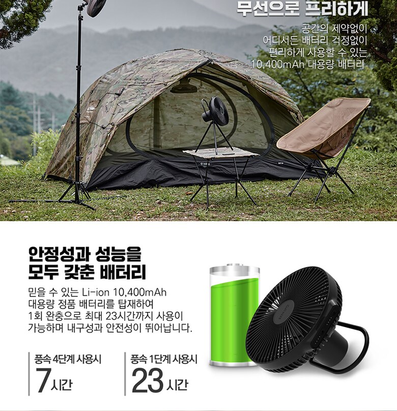크레모아 V1040 무선 캠핑 선풍기 써큘레이터 타프팬