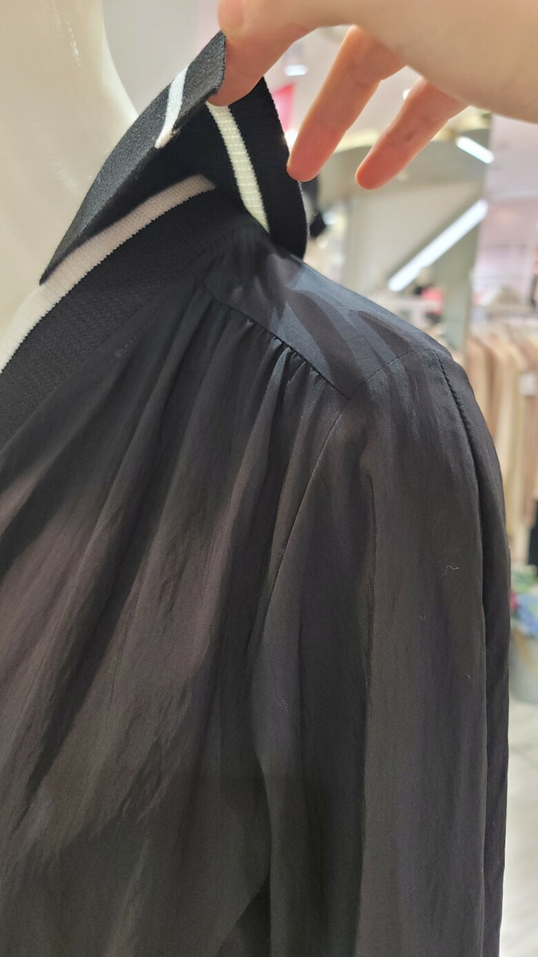 | 1. 제품 소재 (섬유의 조성 또는 혼용률을 백분율로 표시, 기능성인 경우 성적서 또는 허가서) | 겉감:레이온 69%, 나일론 31% / 배색:폴리에스테르 98%, 폴리우레탄 |