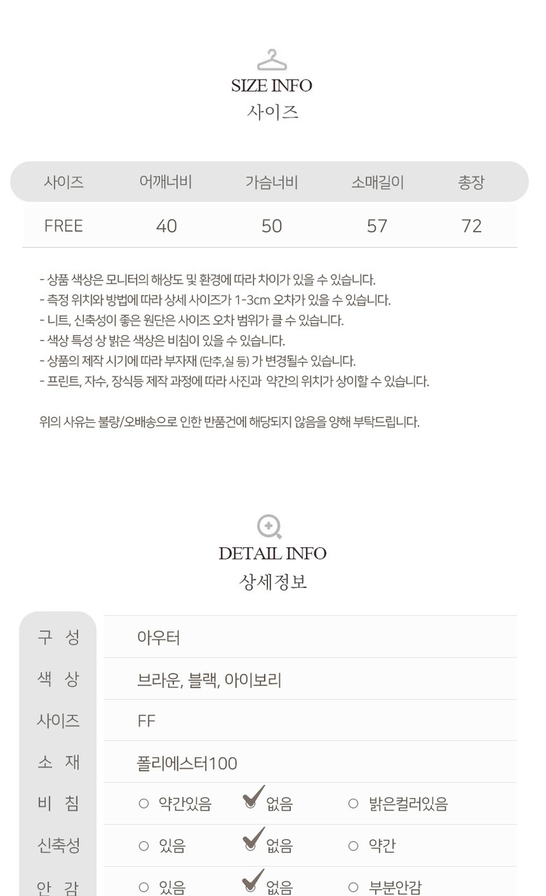1. 제품 소재 (섬유의 조성 또는 혼용률을 백분율로 표시, 기능성인 경우 성적서 또는 허가서) | 상세페이지 참조 |