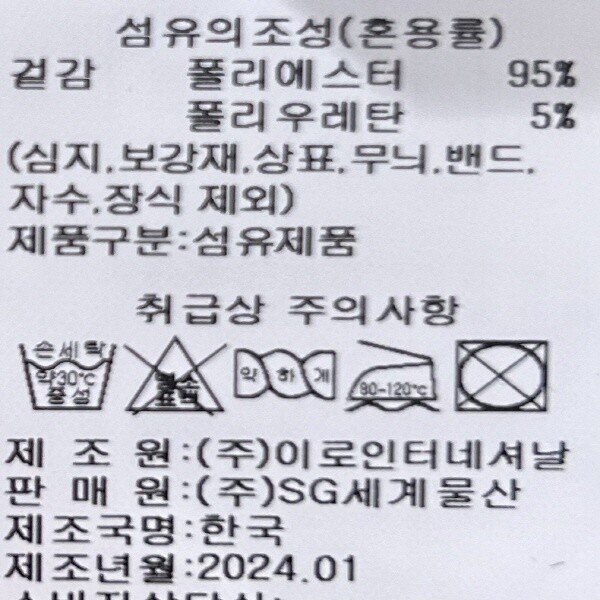 제품소재 : 겉감-폴리에스터95%, 폴리우레탄5%