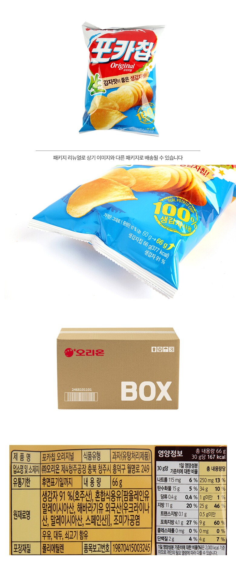 해당 상품은 [ 오리온 포카칩 오리 66g 20입 ] 구성의 상품입니다.