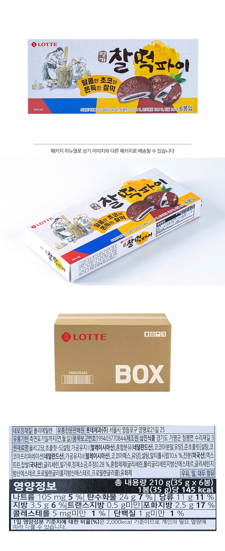 해당 상품은 [ 롯데 명가찰떡파이 210g 12입 ] 구성의 상품입니다.