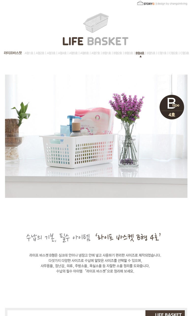 [창신리빙] 라이프바스켓4호B 166x292x117mm화이트
