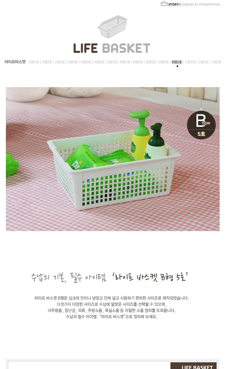 [창신리빙] 라이프바스켓5호B 213x292x117mm화이트