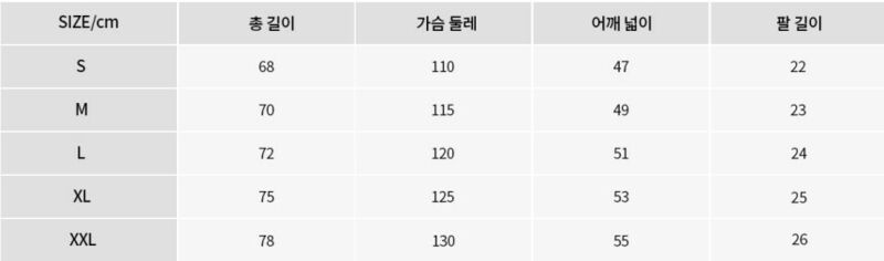상세페이지 하단의 사이즈표를 참조 바랍니다.