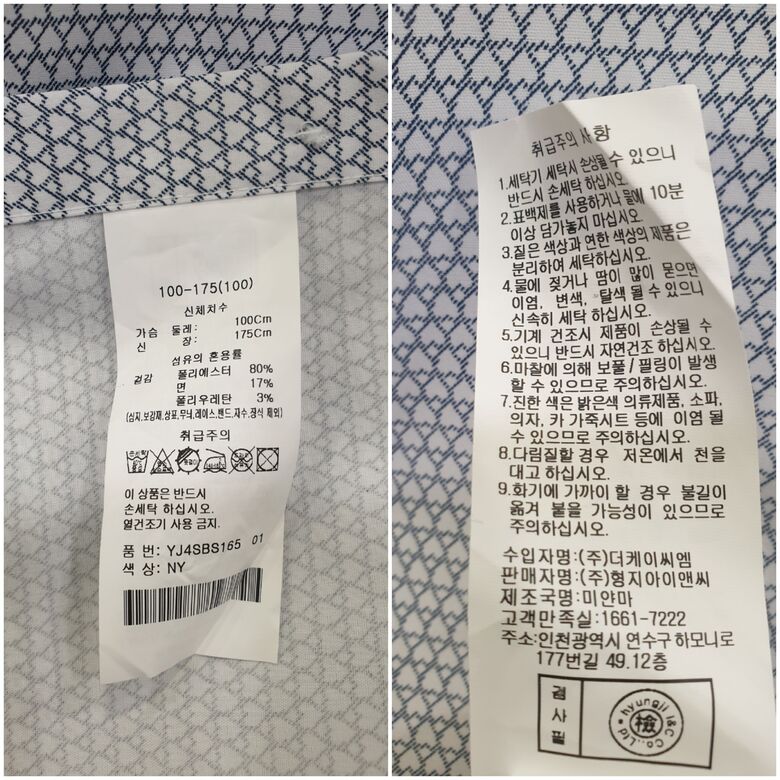 | 6. 세탁방법 및 취급시 주의사항 | 상품상세참조 |
