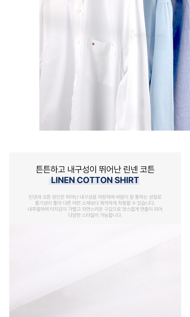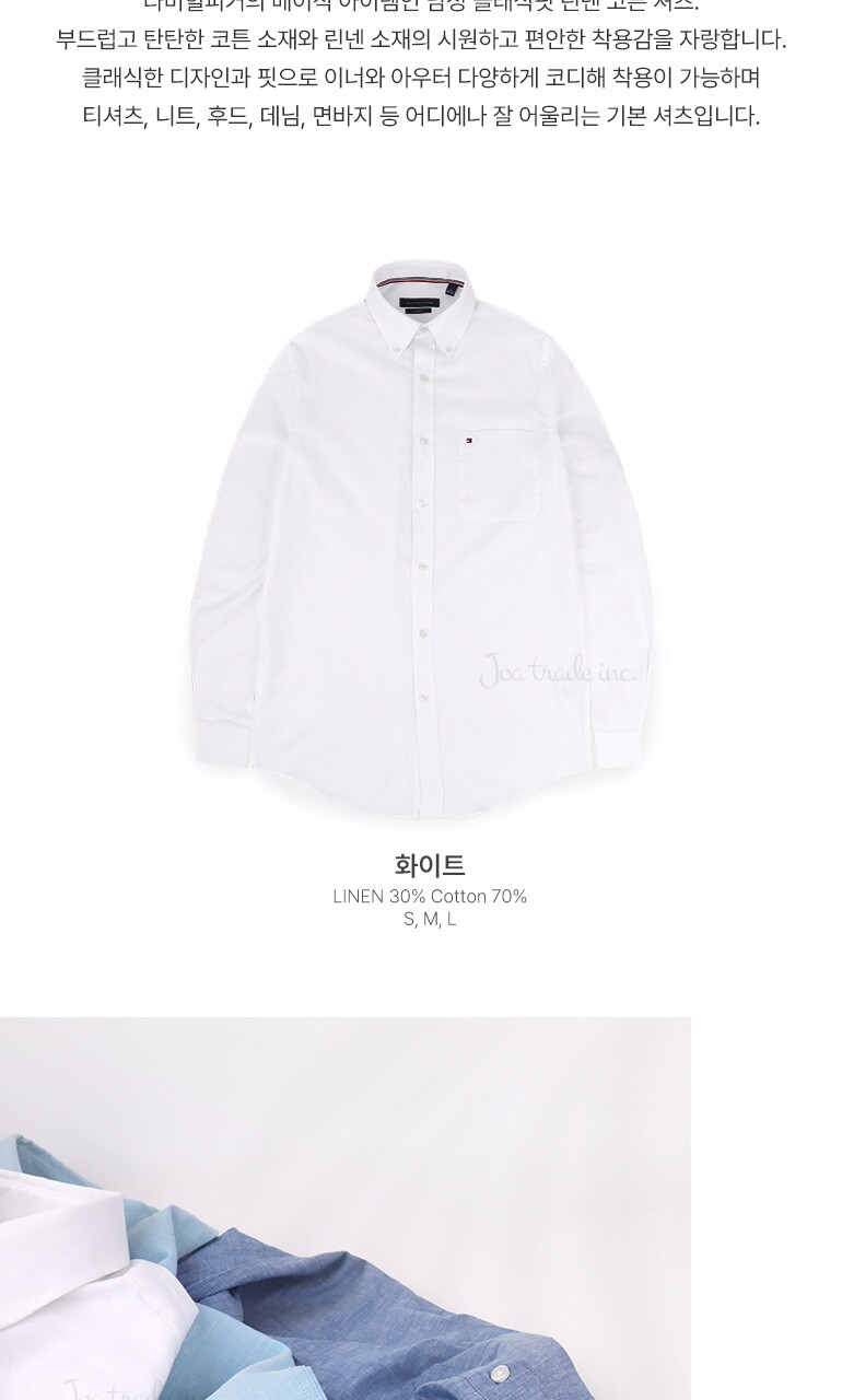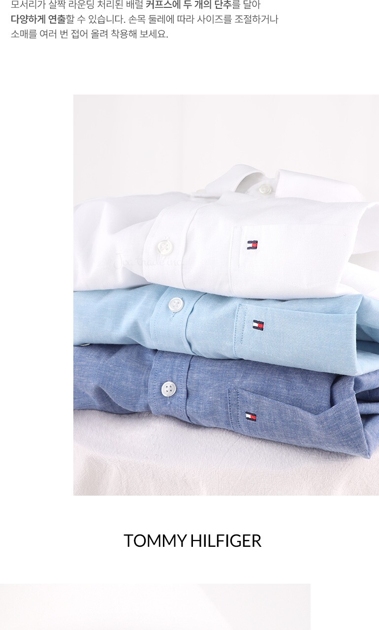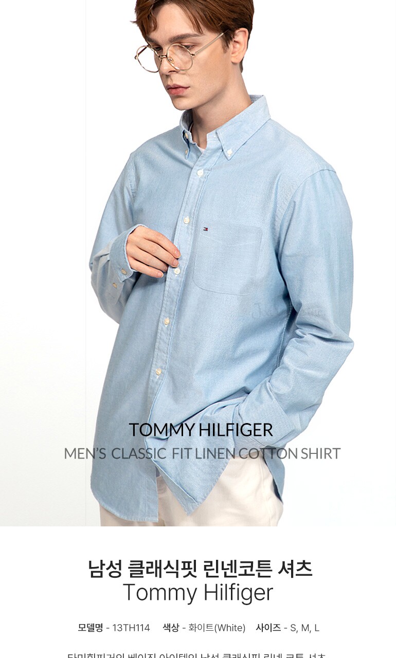 [타미힐피거] 남성 클래식핏 린넨 코튼 셔츠 화이트 (TH114)