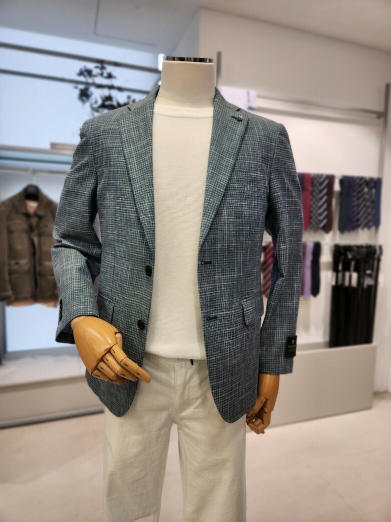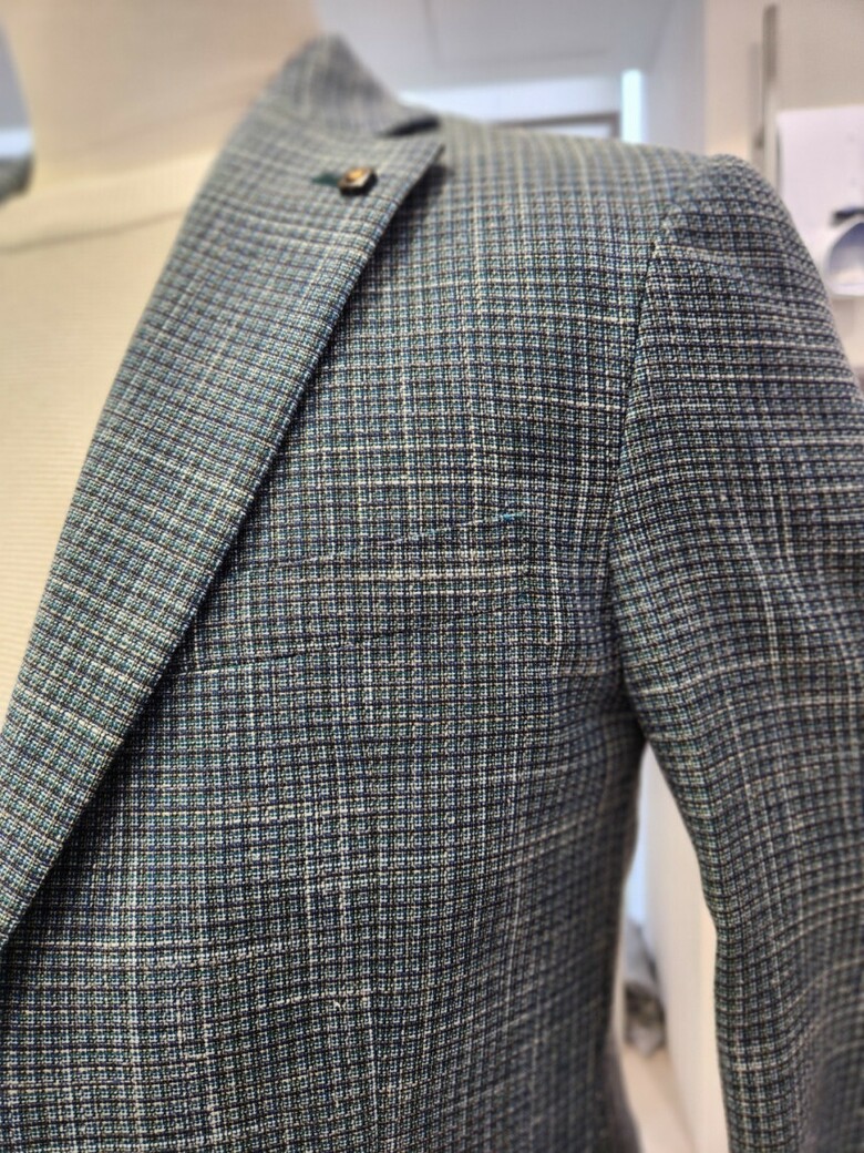 여름 그린 잔체크 기본 콤비 자켓 입니다.