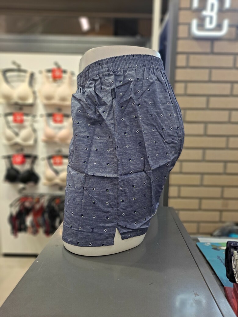 세련된 블루톤의 바닥에 네모 모티브들이 나열되어 깔끔한 스타일의 트렁크제품